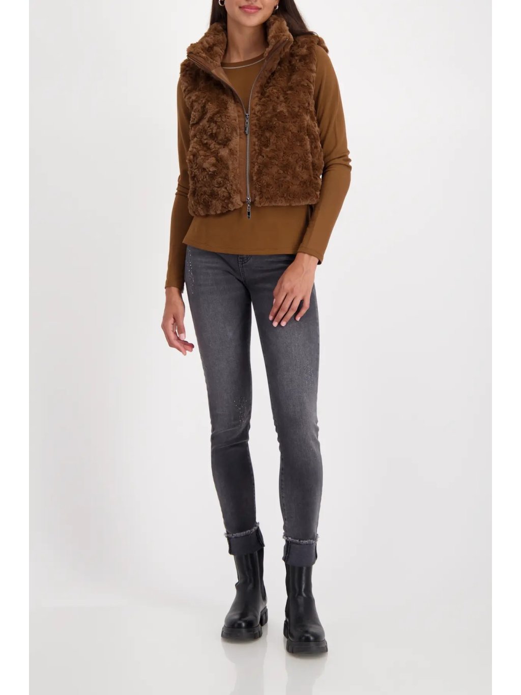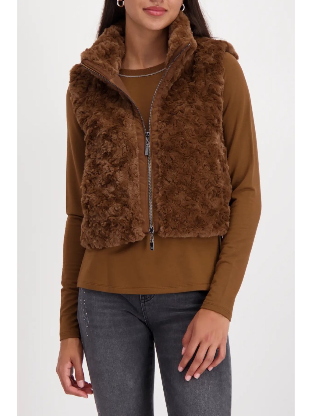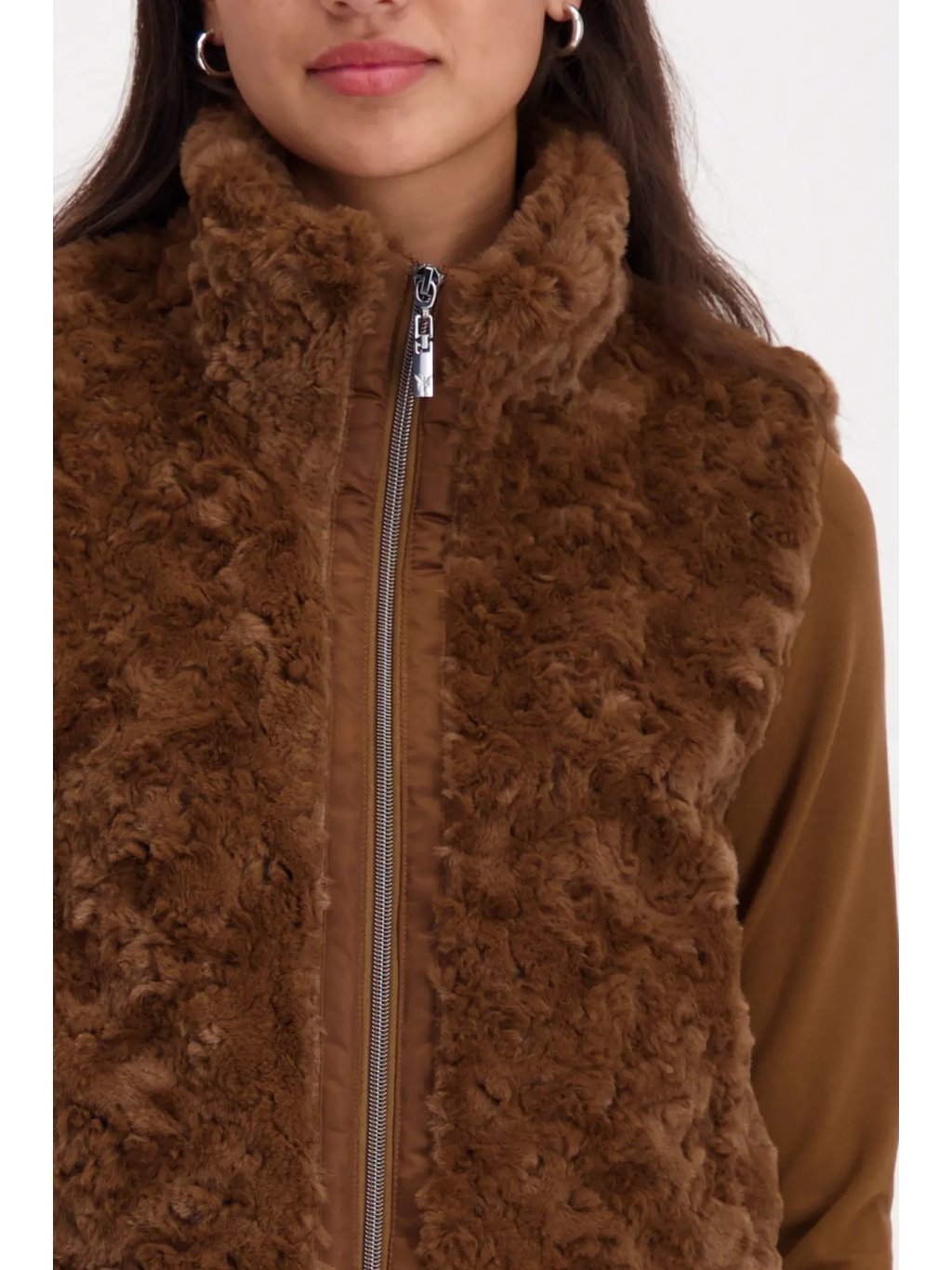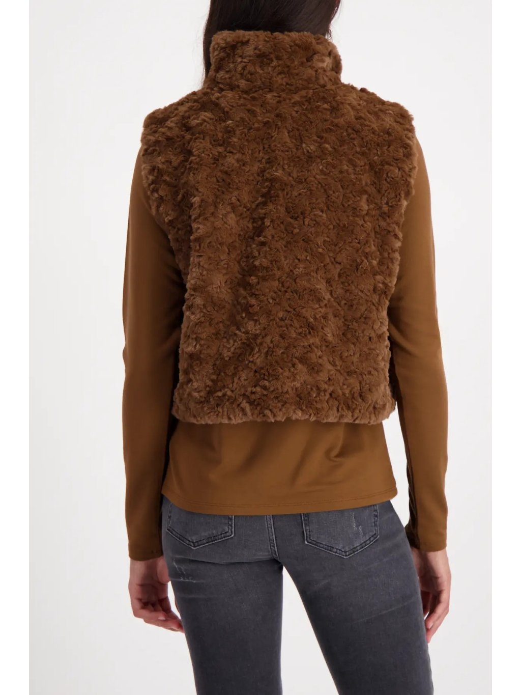 Stylová vesta z umělé kožešiny v barvě whisky s hebkou strukturou dodá každému outfitu nádech luxusu.