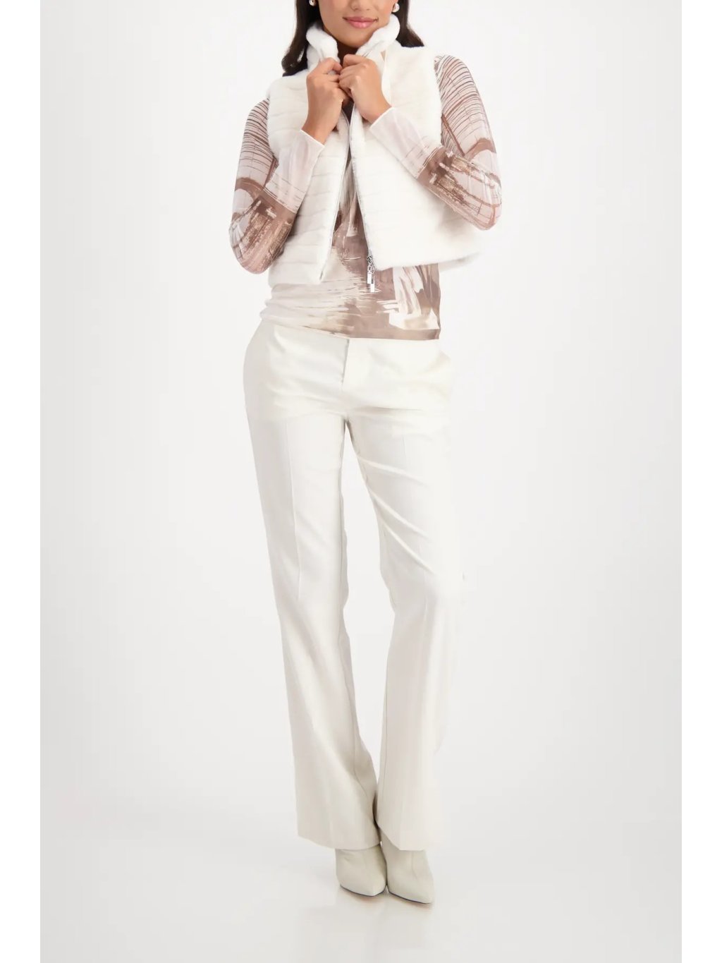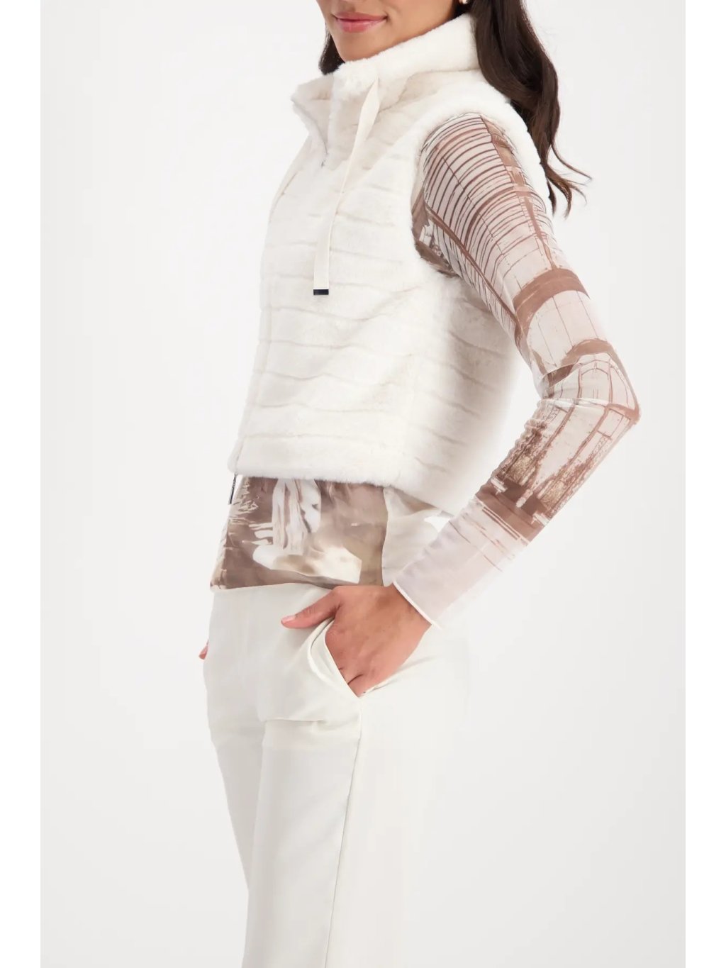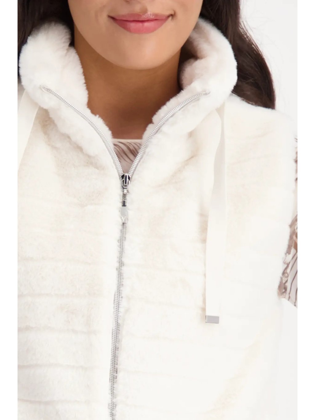 Krátká huňatá vesticka v odstínu almond dodá každému outfitu moderní a přitom útulný vzhled. Je vyrobena z měkkého chlupatého materiálu, který je příjemný na dotek a krásně hřeje. Stojáček chrání před chladem, dvoucestný zip umožňuje pohodlné zapínání a nastavitelné tkanice dodávají vestě sportovně - elegantní detail. Model je ideální na vrstení přes trika, svetříky, šaty i pod kabát - skvělý kousek pro chladnejší dny, kdy chcete být v teple, ale zároveň stylová.