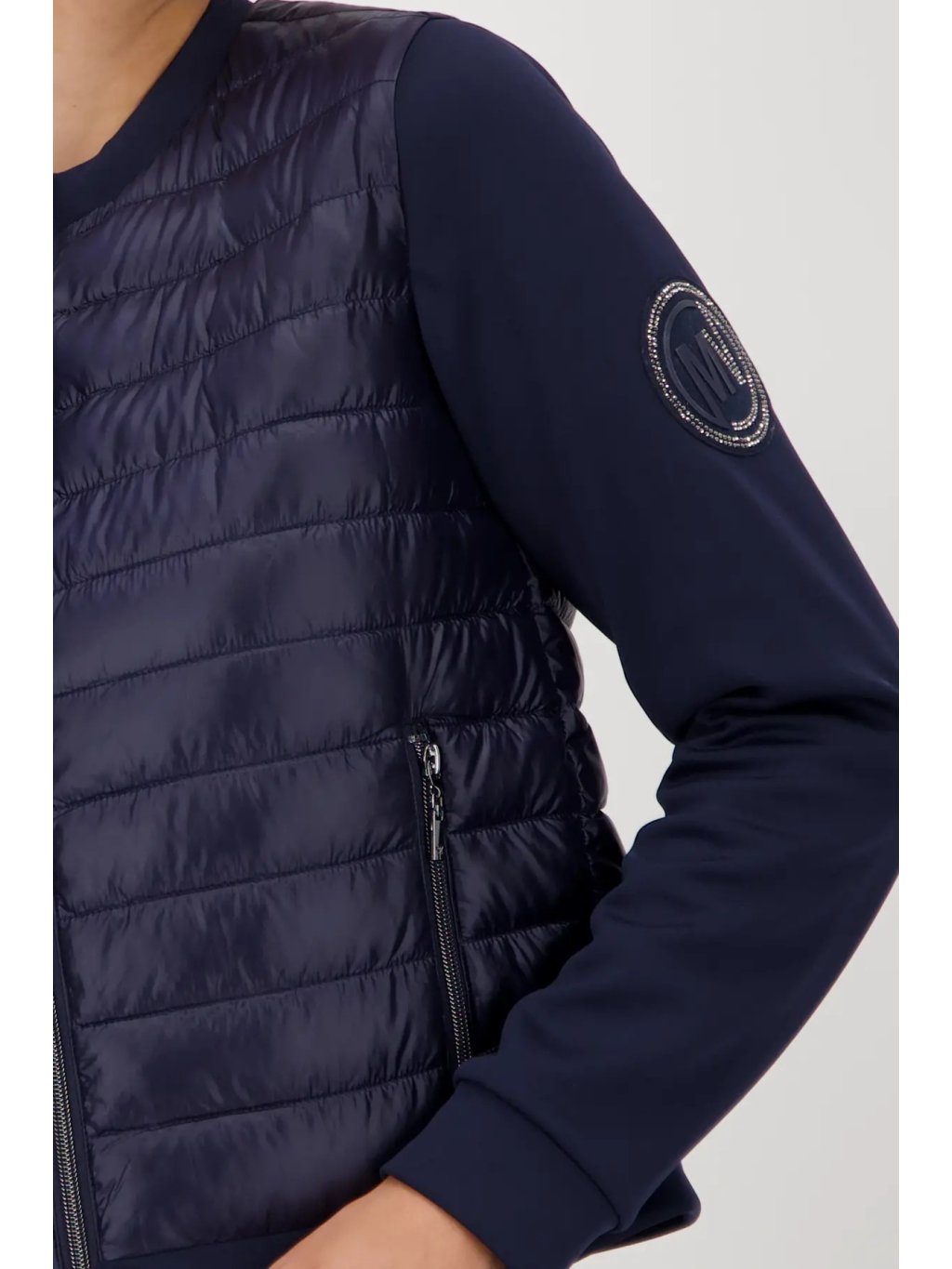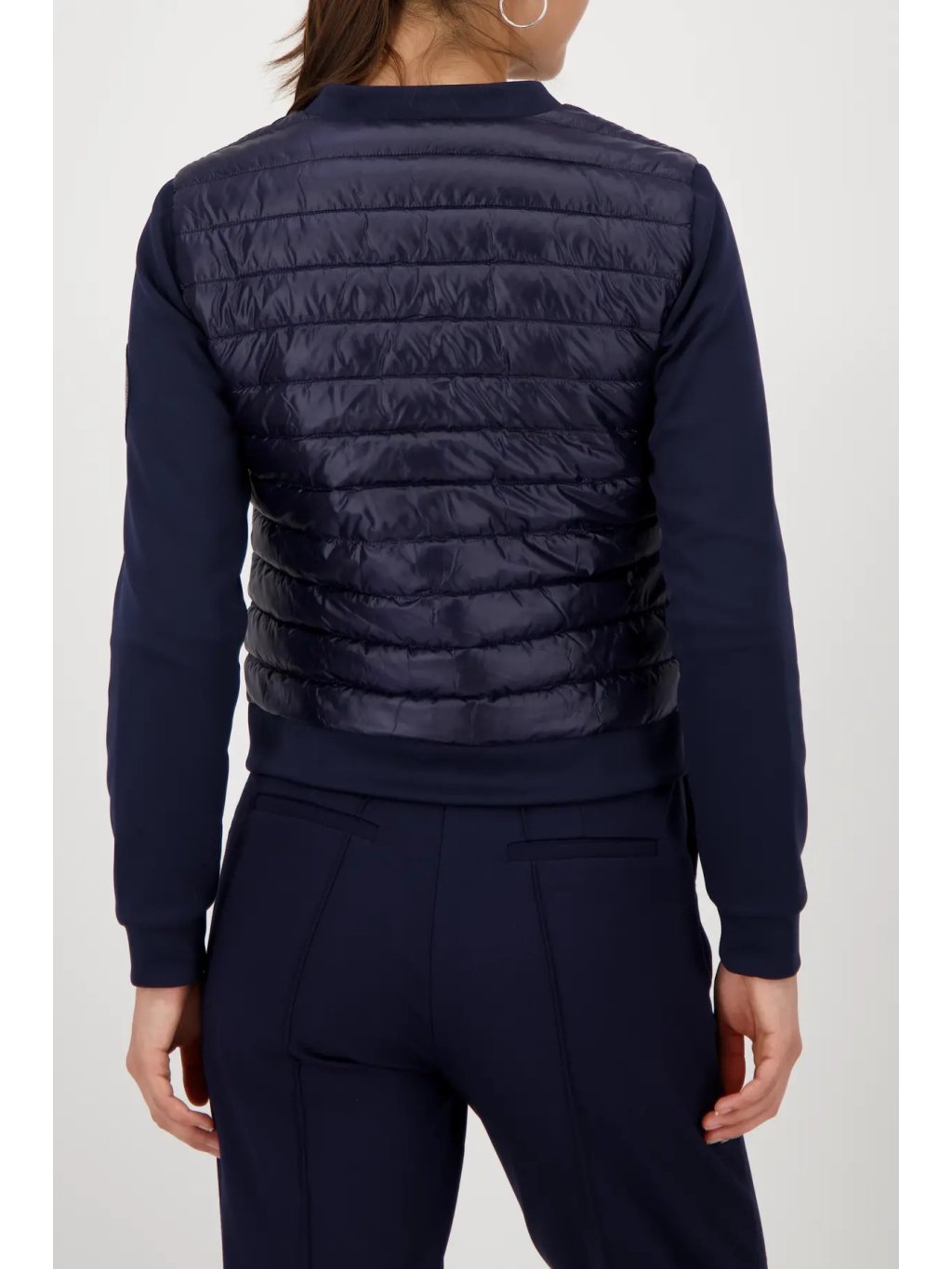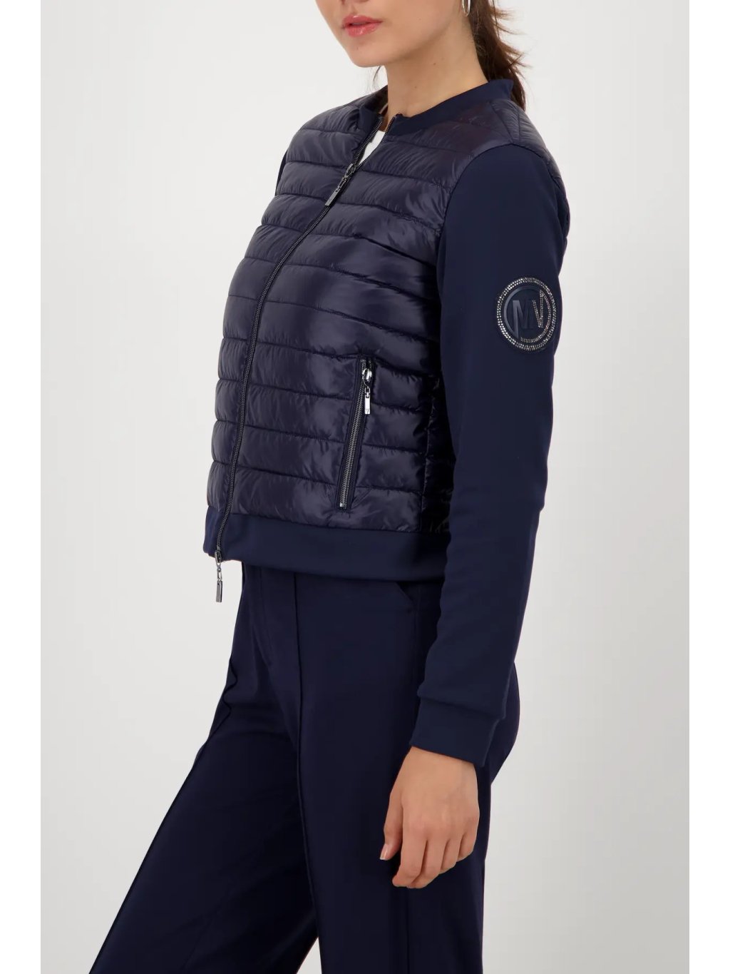 Lehká a stylová bunda v tmavě modré barvě je ideálním společníkem pro přechodové období. Přední část je prošívaná, zatímco rukávy a záda jsou z pohodlného elastického materiálu, díky čemuž bunda krásně sedí a neomezuje v pohybu.