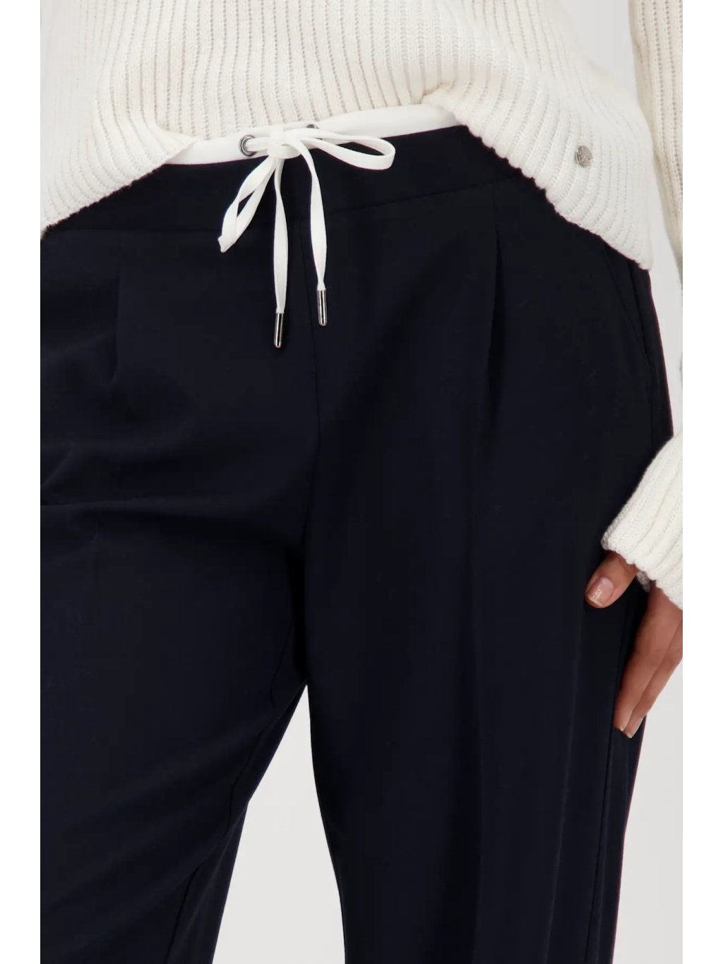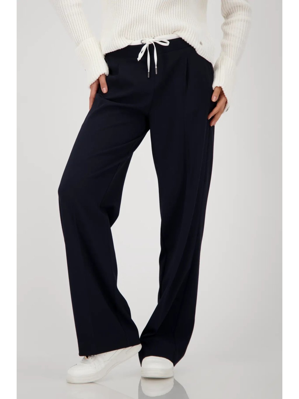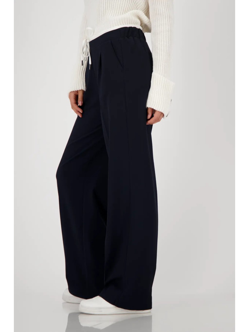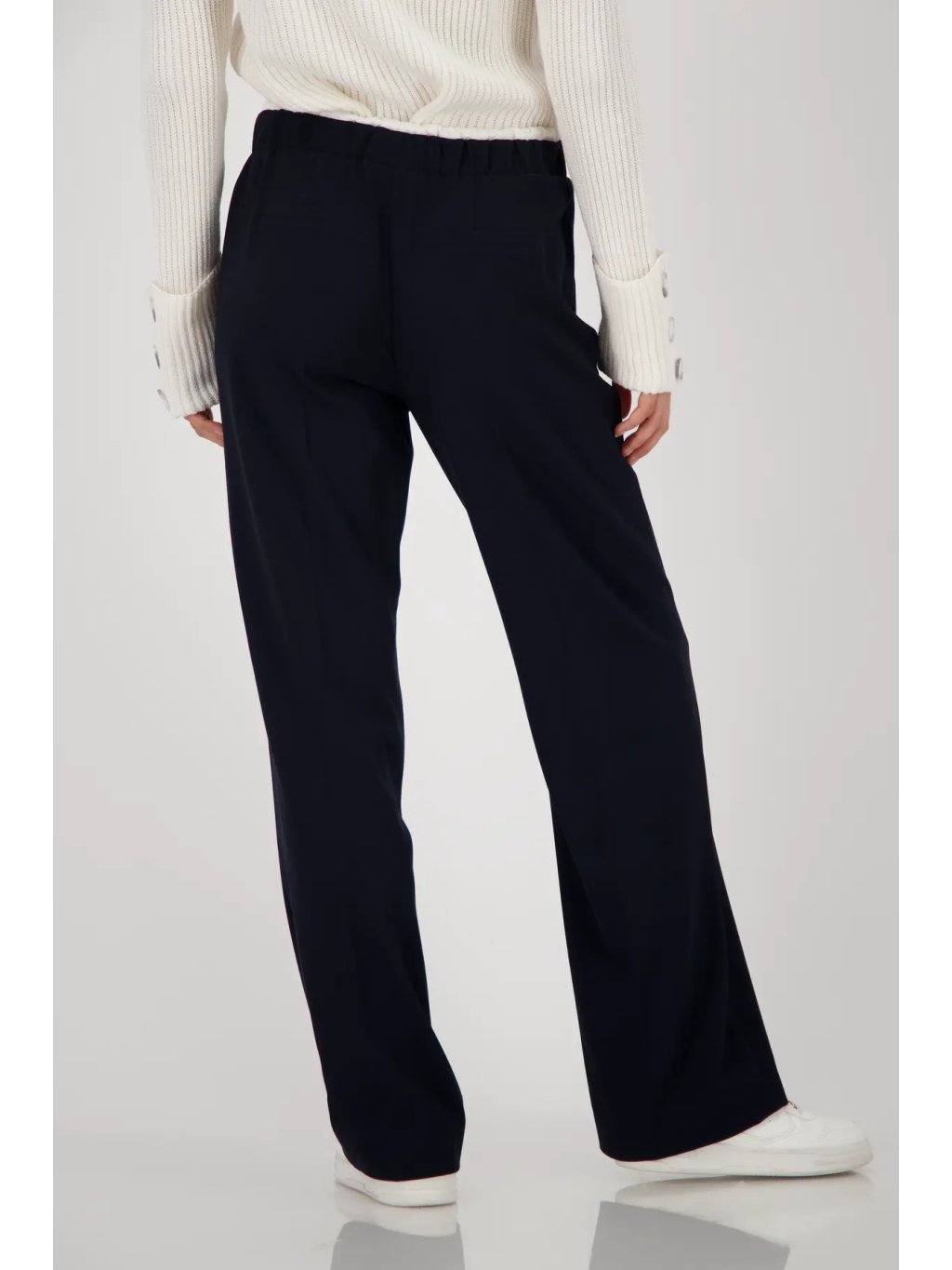 Univerzální a nadčasový kousek, který využijete každý den. Tyto tmavě modré kalhoty s rovnými nohavicemi a pohodlnou gumou v pase se stahovací šnůrkou vám zajistí komfort i ležérní eleganci.