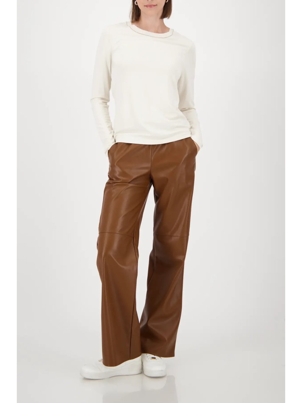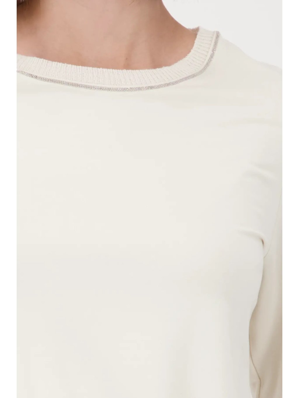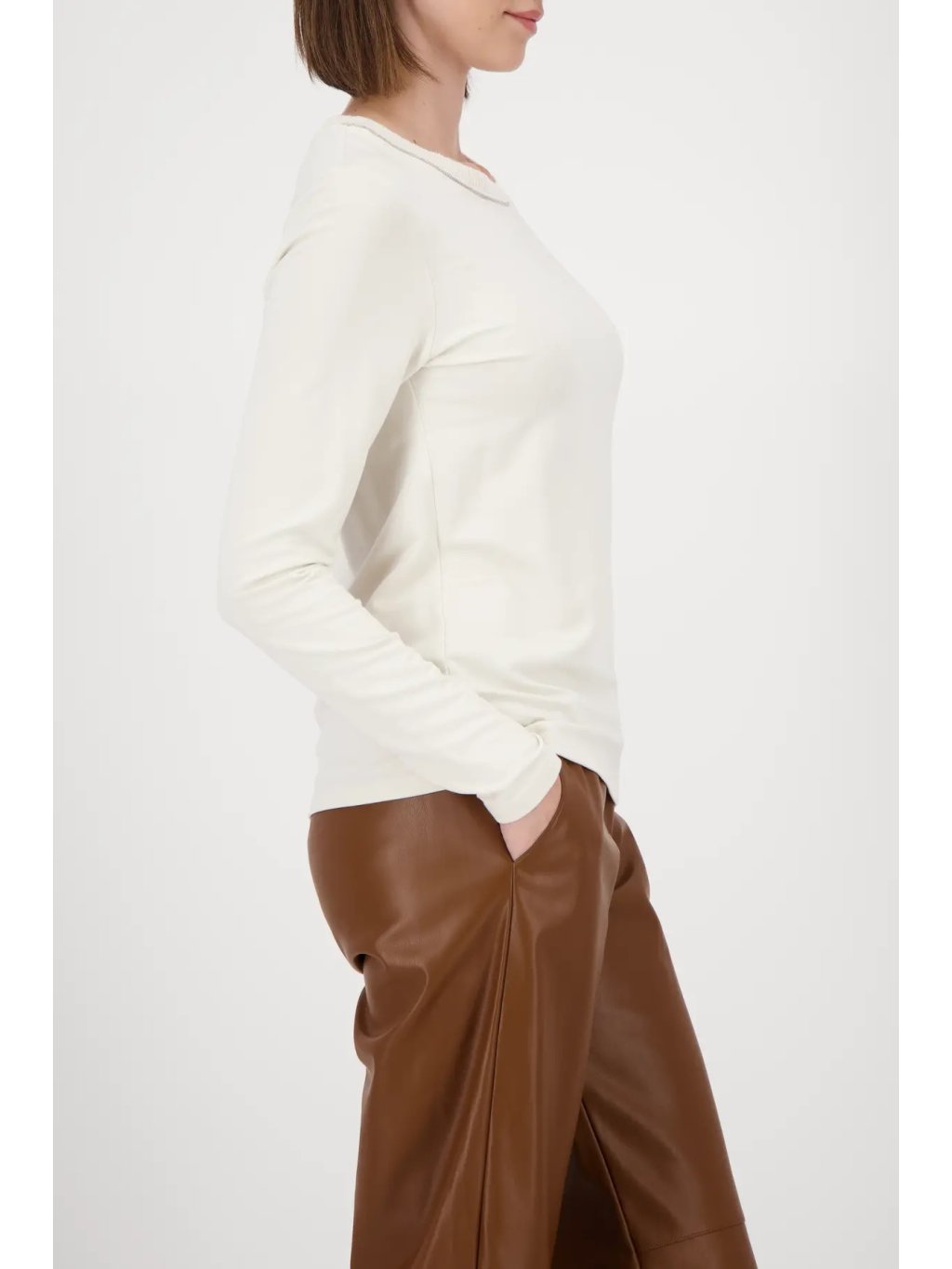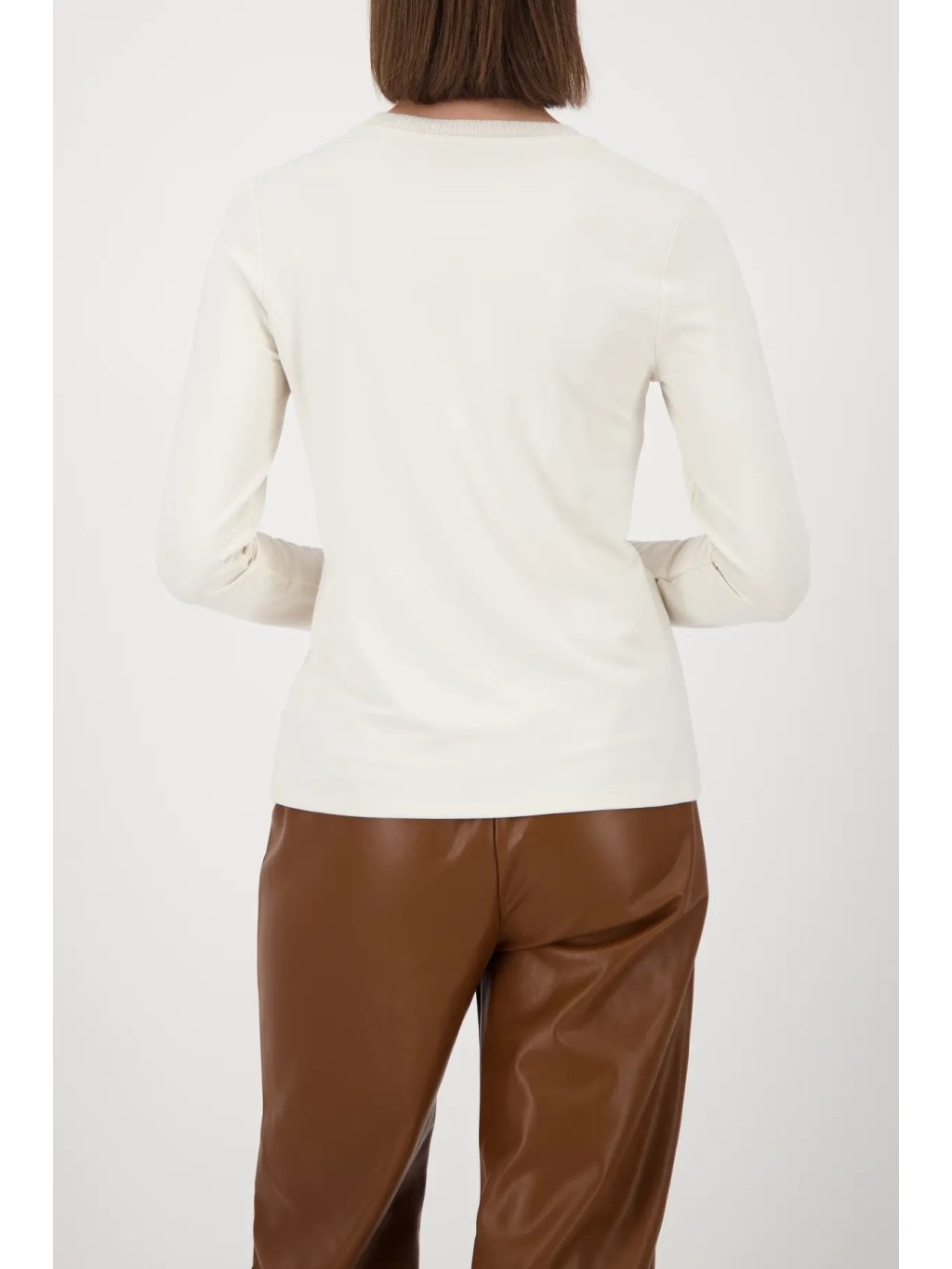Triko s dlouhým rukávem v jemném odstínu mandle má žerzejový lem u výstřihu, který mu dodává elegantní nádech. Příjemný materuál s jemnou strukturou zaručí maximální pohodlí při nošení - ideální jako základ pro vrstvení i samotné.