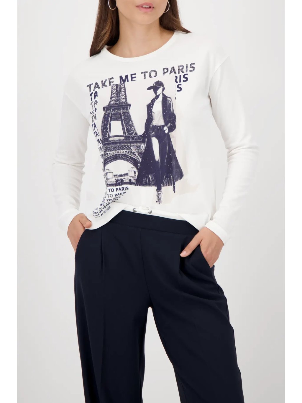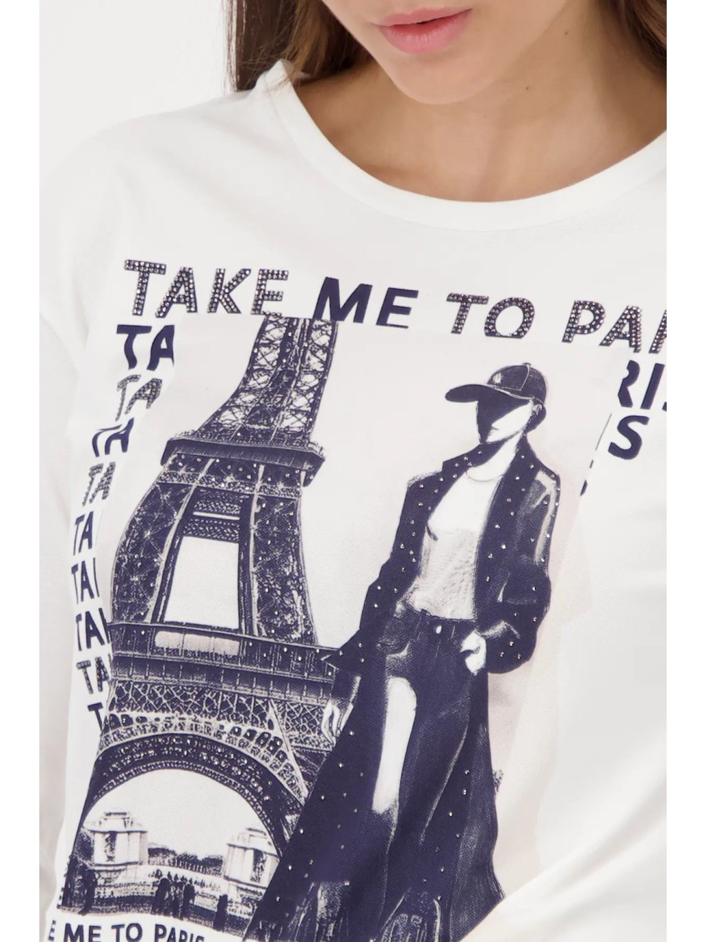 Bílé tričko s dlouhým rukávem a originálním potiskem Eiffelovy Věže v kombinaci s moderní ilustrací působí stylově a nadčasově. Text " Take me to Paris" dodává hravý francouzský šmrnc.