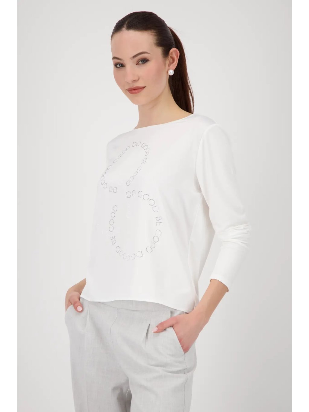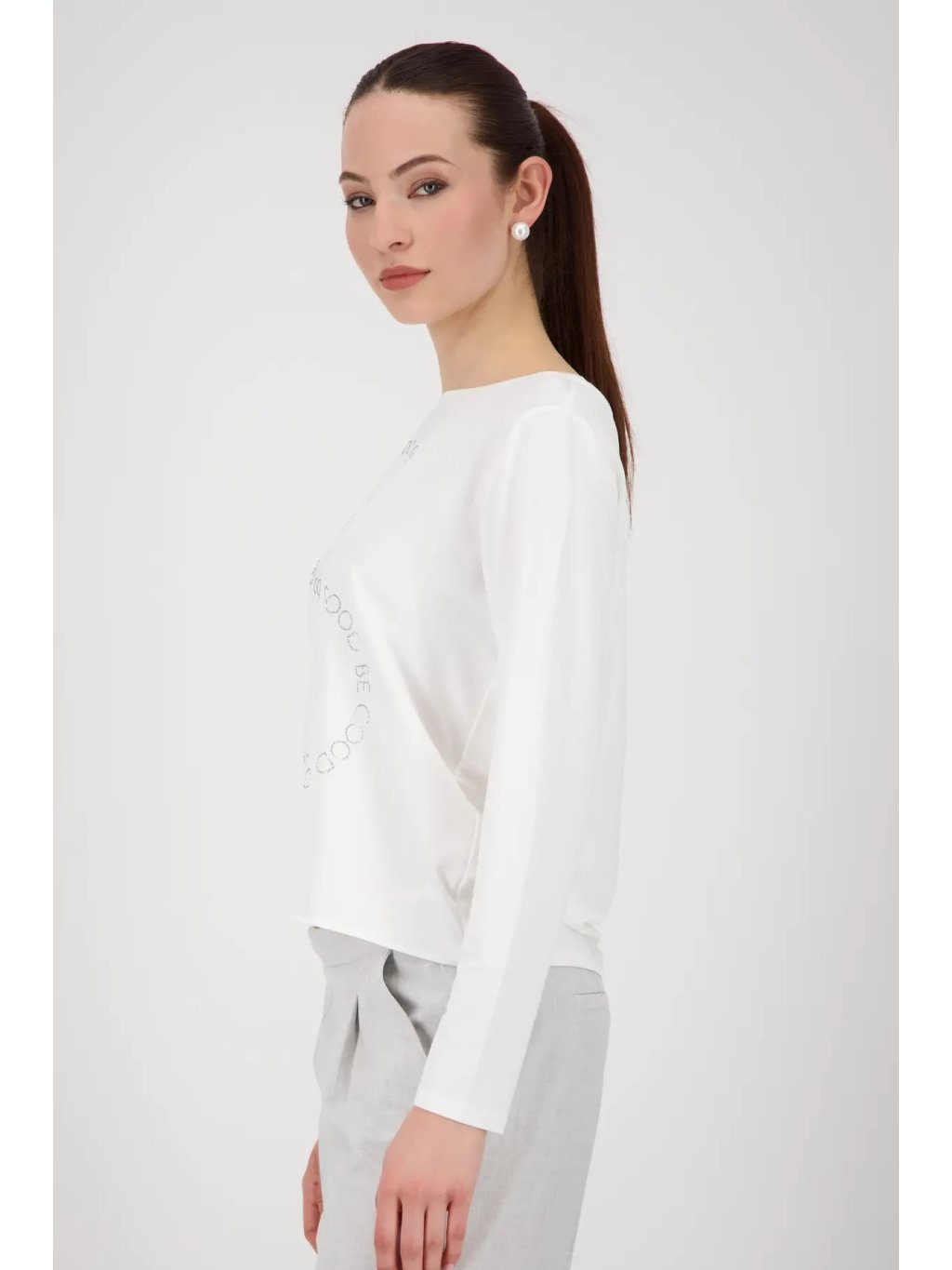 Toto triko je vyrobeno ze splývavé viskózy a s modalem . Zaujme svým pružným materiálem a elegantním saténovým vzorem vpředu a s nápisem s kamínky " Do Good Be Good "