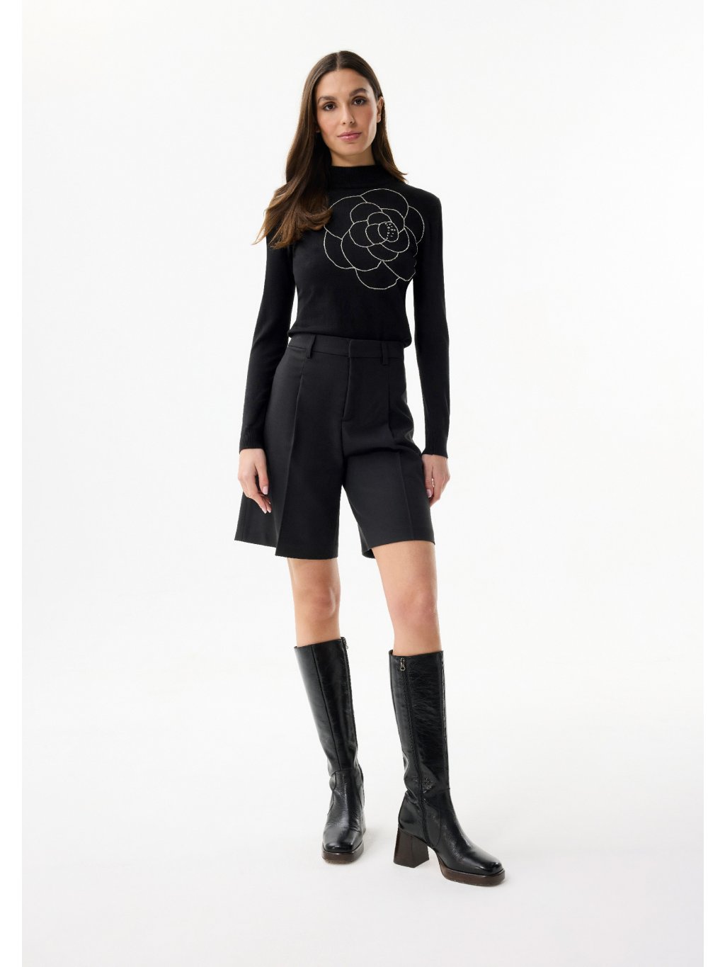 Jemný úplet s rolákem a ikonickým květem, který zaujme na první pohled. Precizní vyšívaný motiv s perličkami působí elegantně a nadčasově.