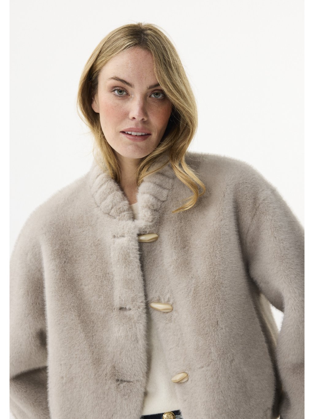 Elegantní krátký kabátek z měkké umělé kožešiny, který vyniká svou lehkostí a neobyčejným komfortem. Má