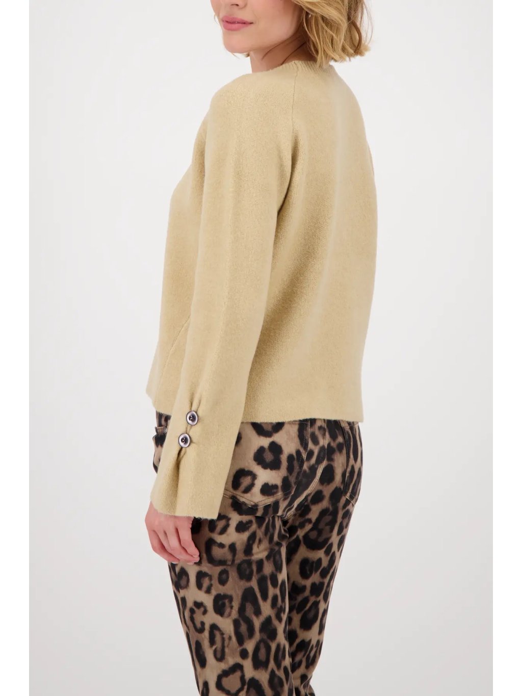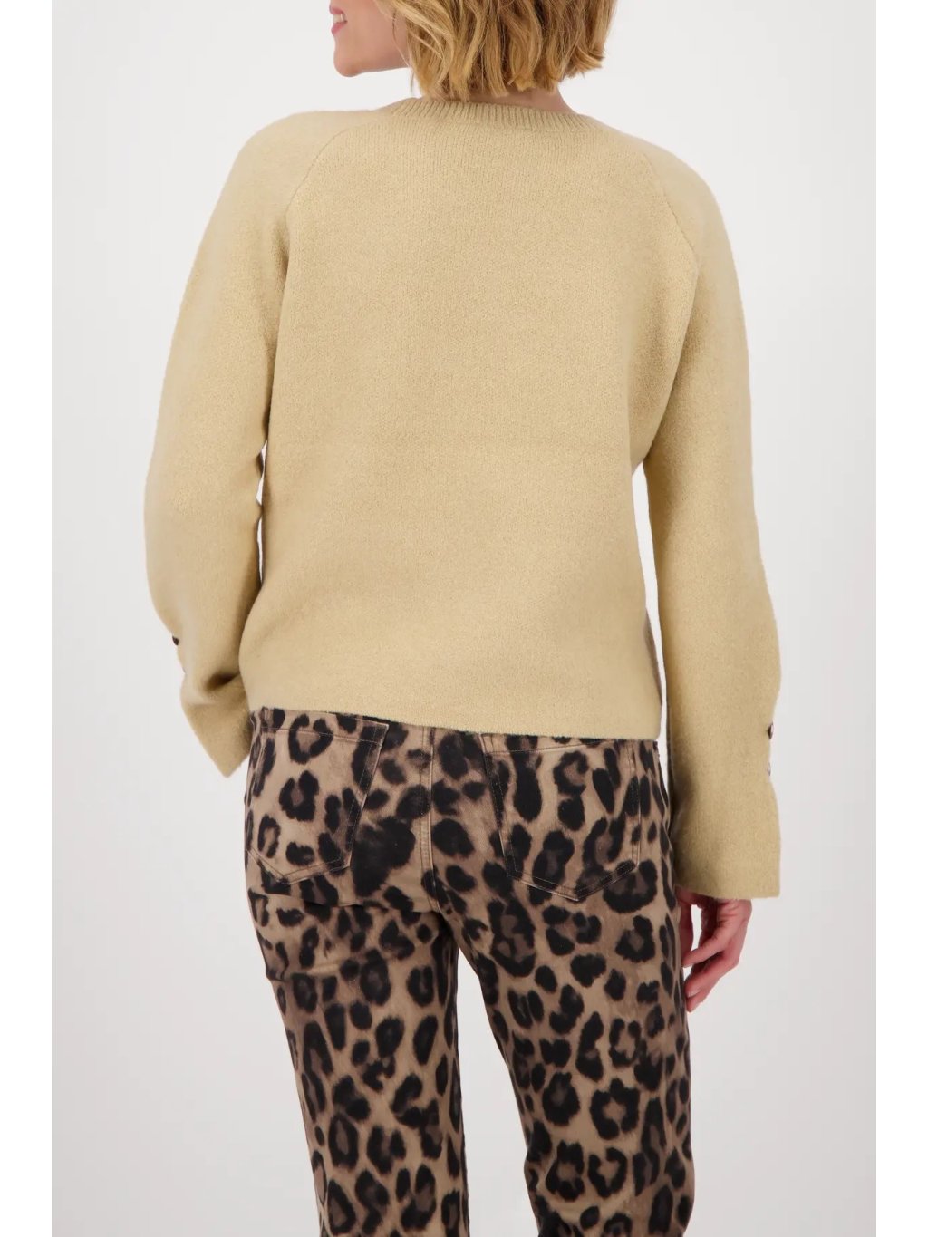 Jednoduchý, ale šik - tento béžový svetr s kulatým výstřihem se stane základem vašeho šatníku. Zajimavým detailem jsou ozdobné knoflíky na rukávech, které dodávají jemný nádech originality.