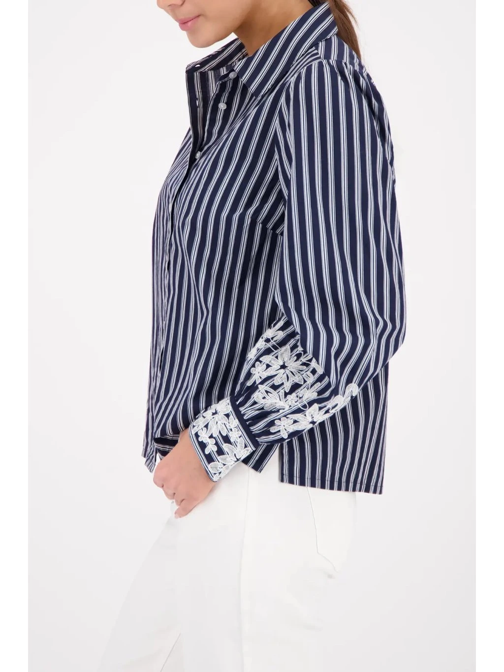 Lehký bavlněný materiál je příjemný na nošení, prodyšný a ideální pro celodenní komfort. Halenka krásně splývá s postavou, působí upraveně, ale přirozeně neformálně. Skvěle se kombinuje s bílými nebo tmavě modrými kalhotami, džínami i sukní.