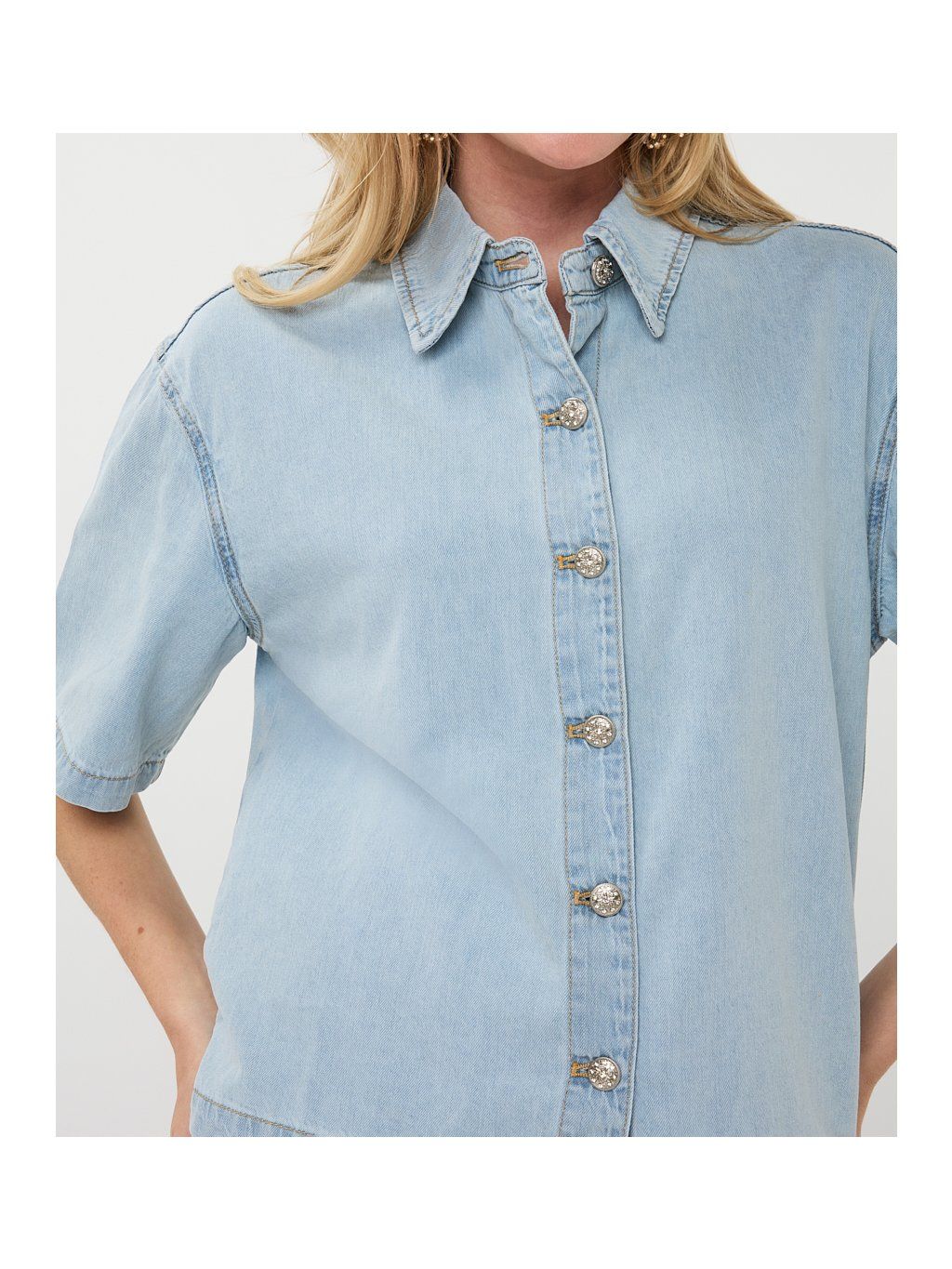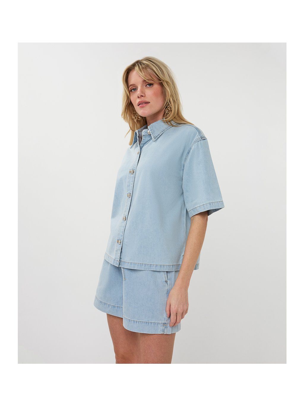 100% bavlna zajišťuje maximální pohodlí, prodyšnost a příjemný pocit na těle i během teplejších dnů. Košile má volnější, lehce oversized střih, který krásně sedí a snadno se kombinuje – ať už s džínami, kraťasy nebo sukní.
