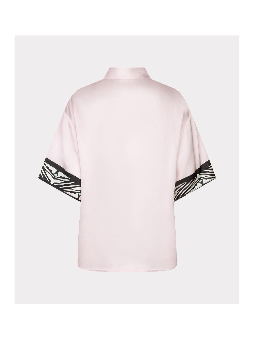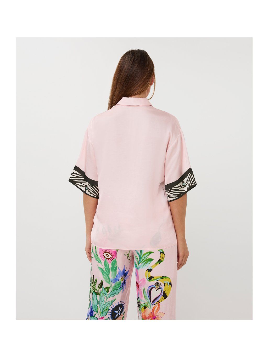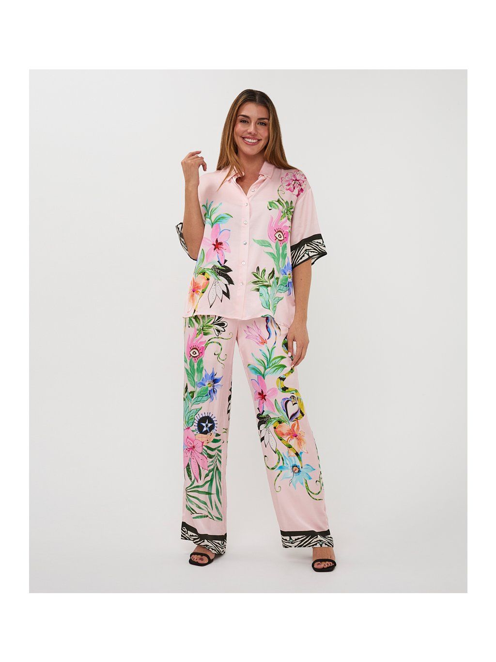 Lehká dámská halenka značky EsQualo s originálním „Mystic“ potiskem zaujme na první pohled svým hravým a uměleckým designem. Jemný růžový podklad doplňují výrazné motivy květin, listů a detailů, které dodávají outfitu osobitost a šmrnc.