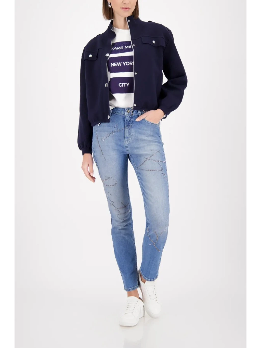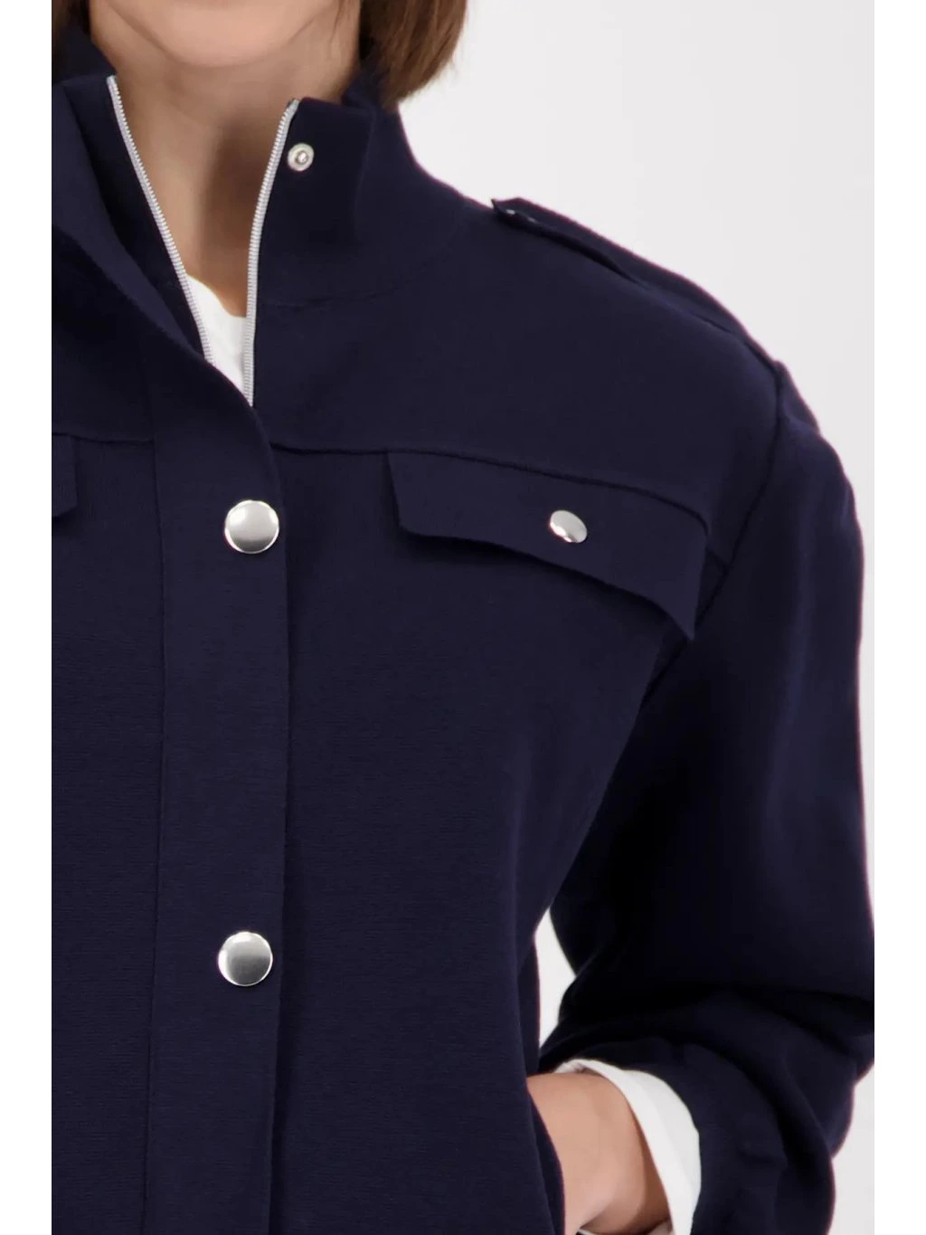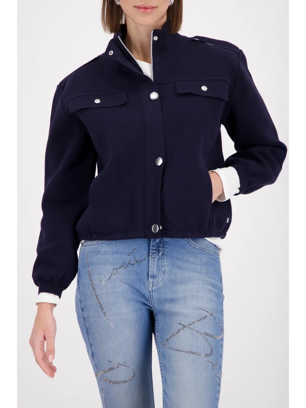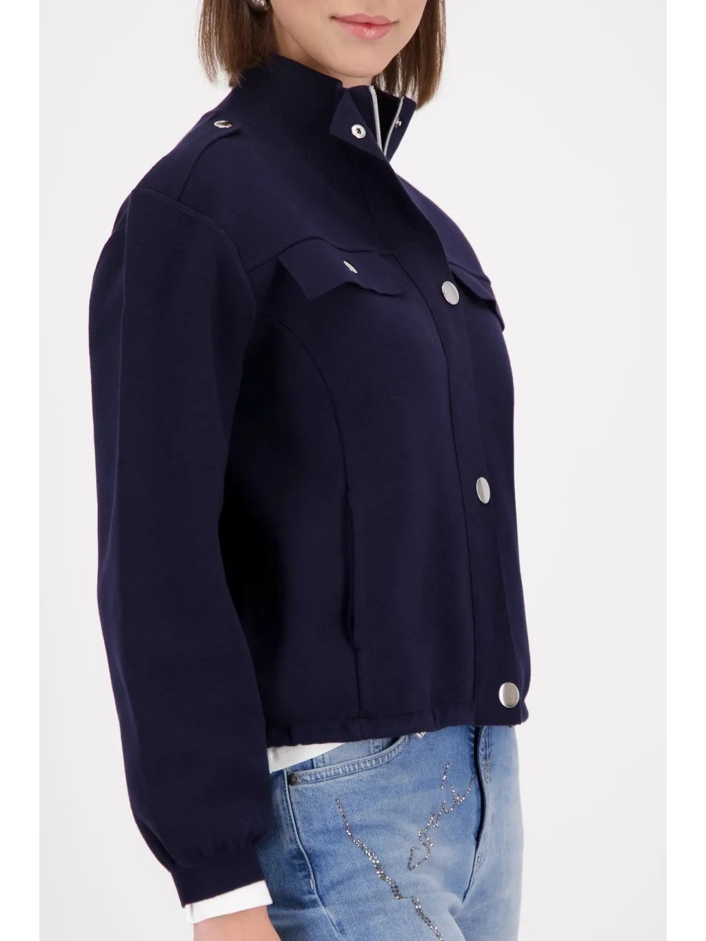 Elegantní cargo bundička MONARI z kolekce Cape Town je perfektní kombinací moderního stylu a komfortu. Námořnická barva marine působí luxusně a nadčasově, zatímco strukturovaný úplet krásně drží tvar a vytváří čistou, sofistikovanou siluetu.