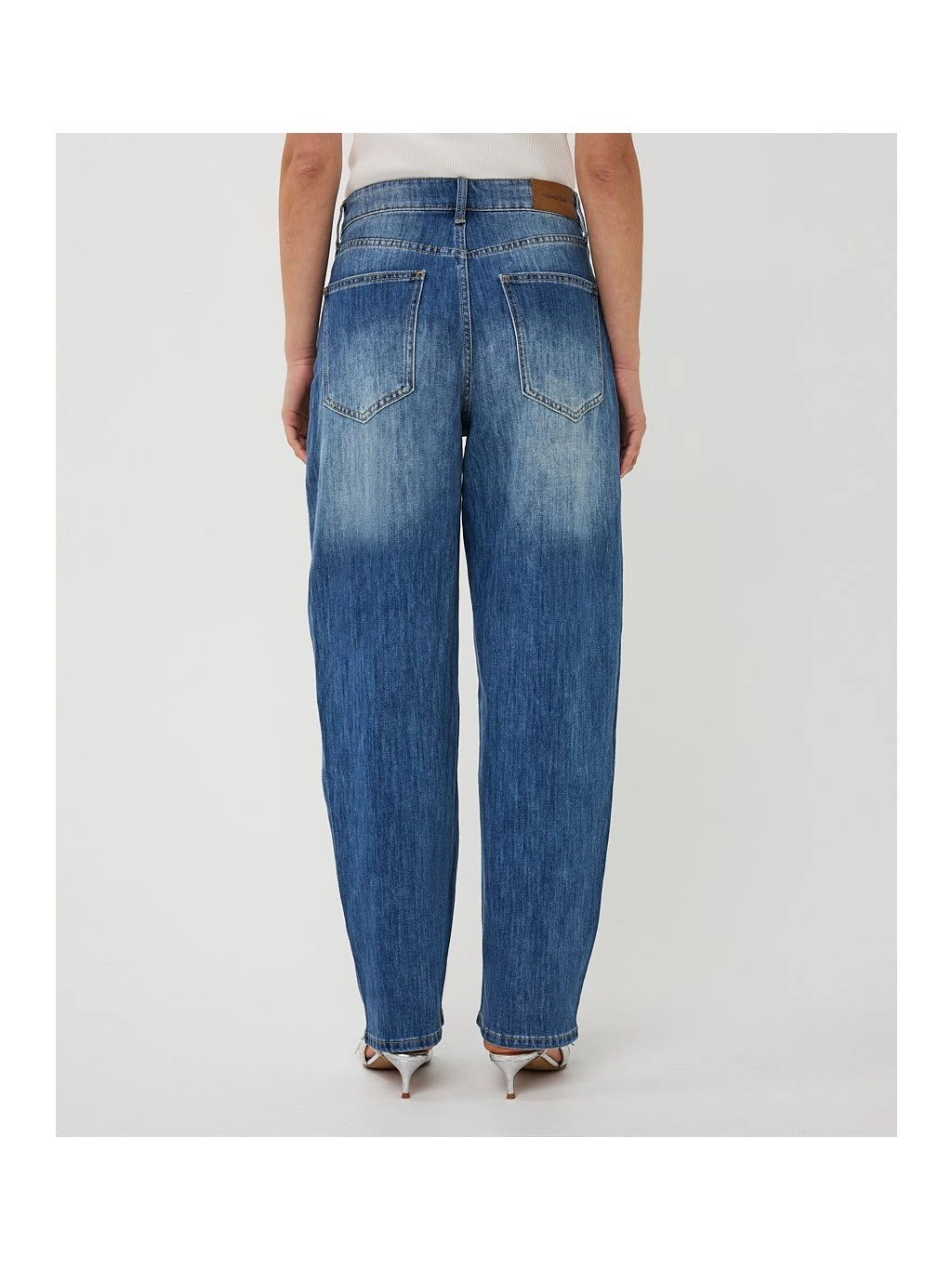 Moderní dámské džíny EsQualo v barrel střihu jsou stylovým kouskem, který krásně kombinuje pohodlí a aktuální módní siluetu. Typický barrel tvar – lehce rozšířený v oblasti stehen a zúžený ke kotníkům – vytváří uvolněný, ale velmi lichotivý vzhled.