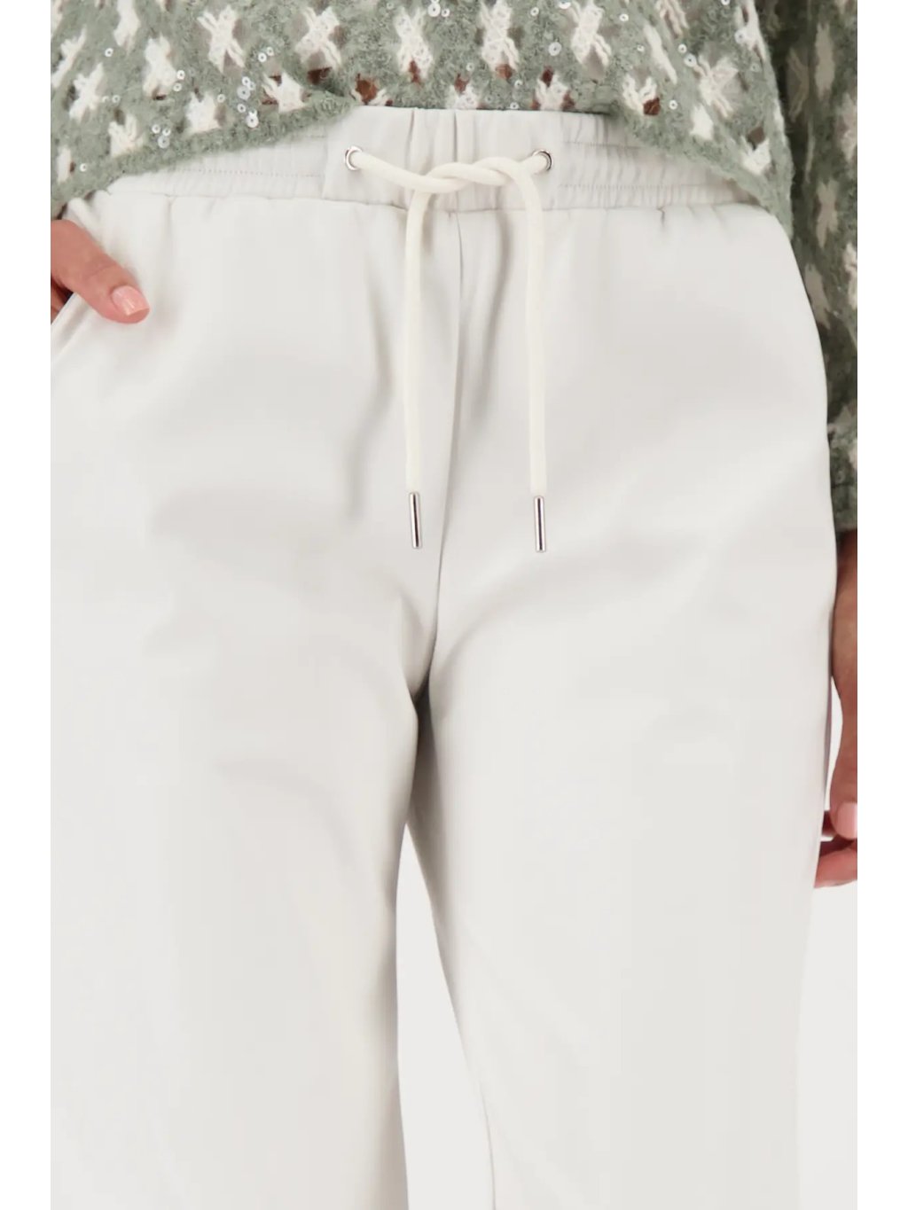 V pase se nachází elastický guma s ozdobnou šňůrkou, díky které se kalhoty krásně přizpůsobí postavě. Praktické postranní kapsy dodávají šmrnc a nechybí ani efektní řešení falešných kapes vzadu.