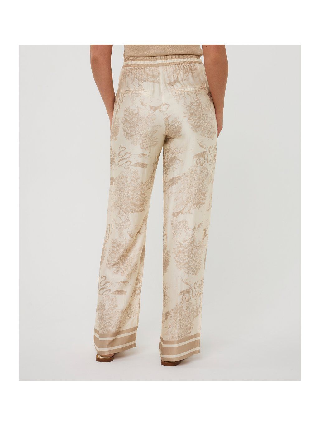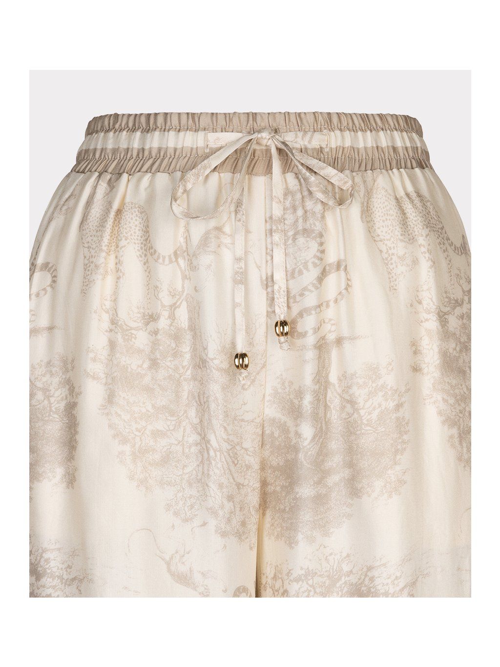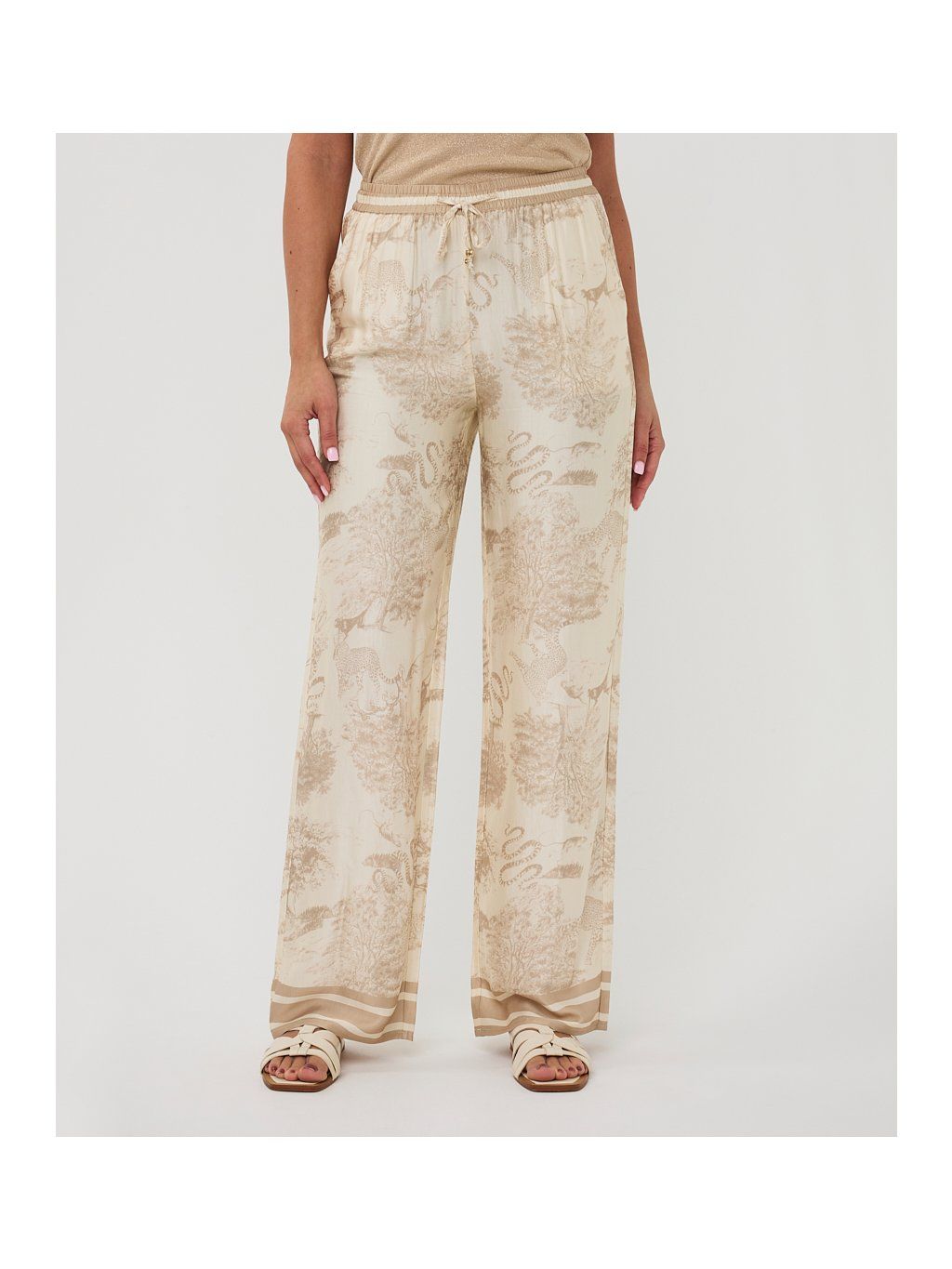 Lehké dámské kalhoty značky EsQualo v jemném „Safari“ potisku přinášejí pocit klidu, elegance a maximálního pohodlí. Neutrální béžové tóny s jemným vzorem působí velmi sofistikovaně a snadno se kombinují s dalšími kousky ve vašem šatníku.