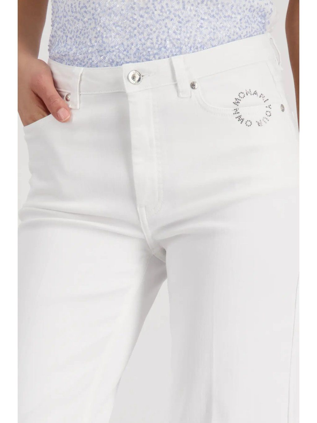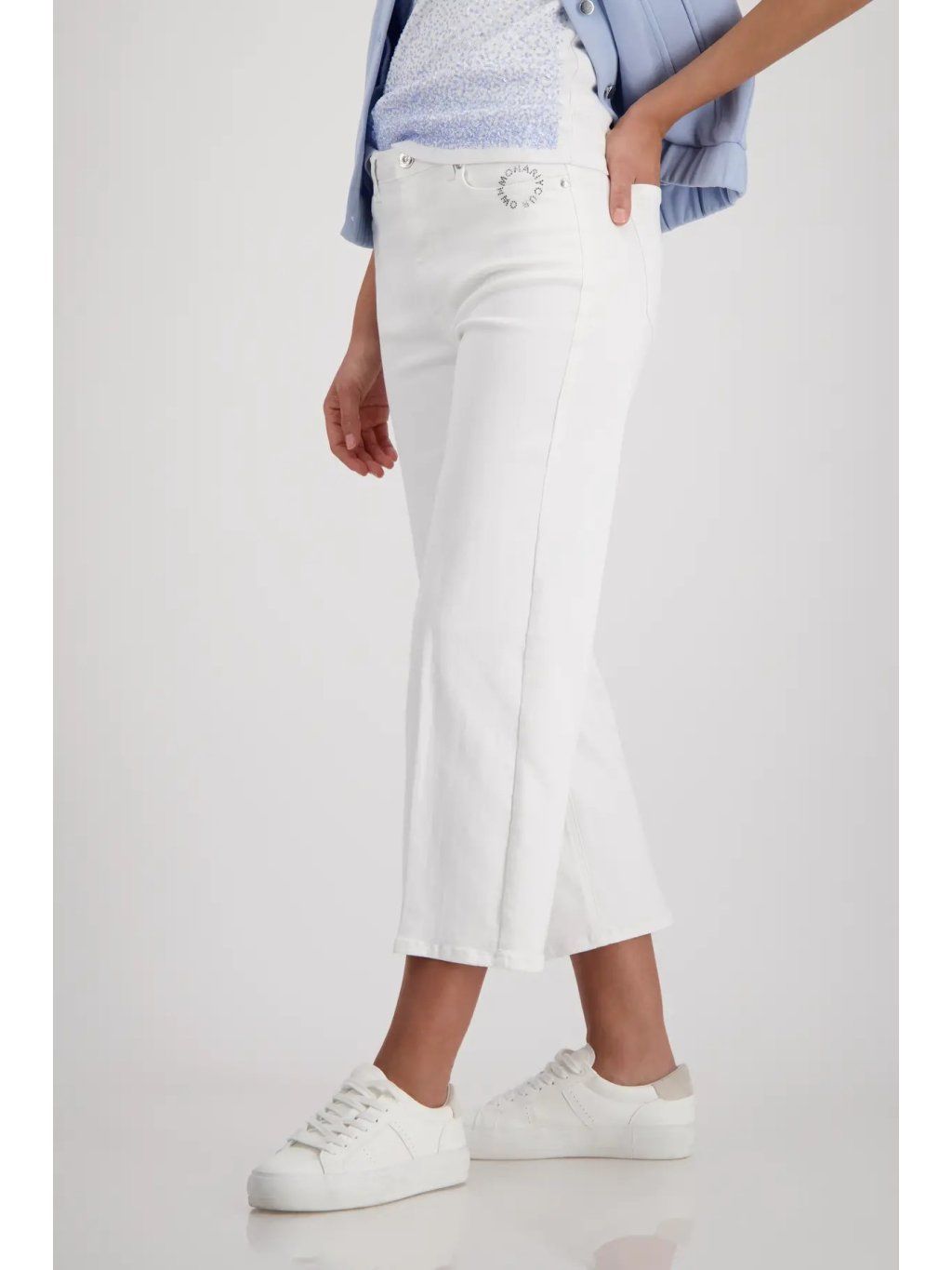 Stylové culotte džíny MONARI v moderním bílém odstínu jsou ideální volbou pro ženy, které chtějí spojit pohodlí s elegantním detailem. Zaujmou jemným štrasovým zdobením, které dodává kalhotám luxusní a ženský nádech.