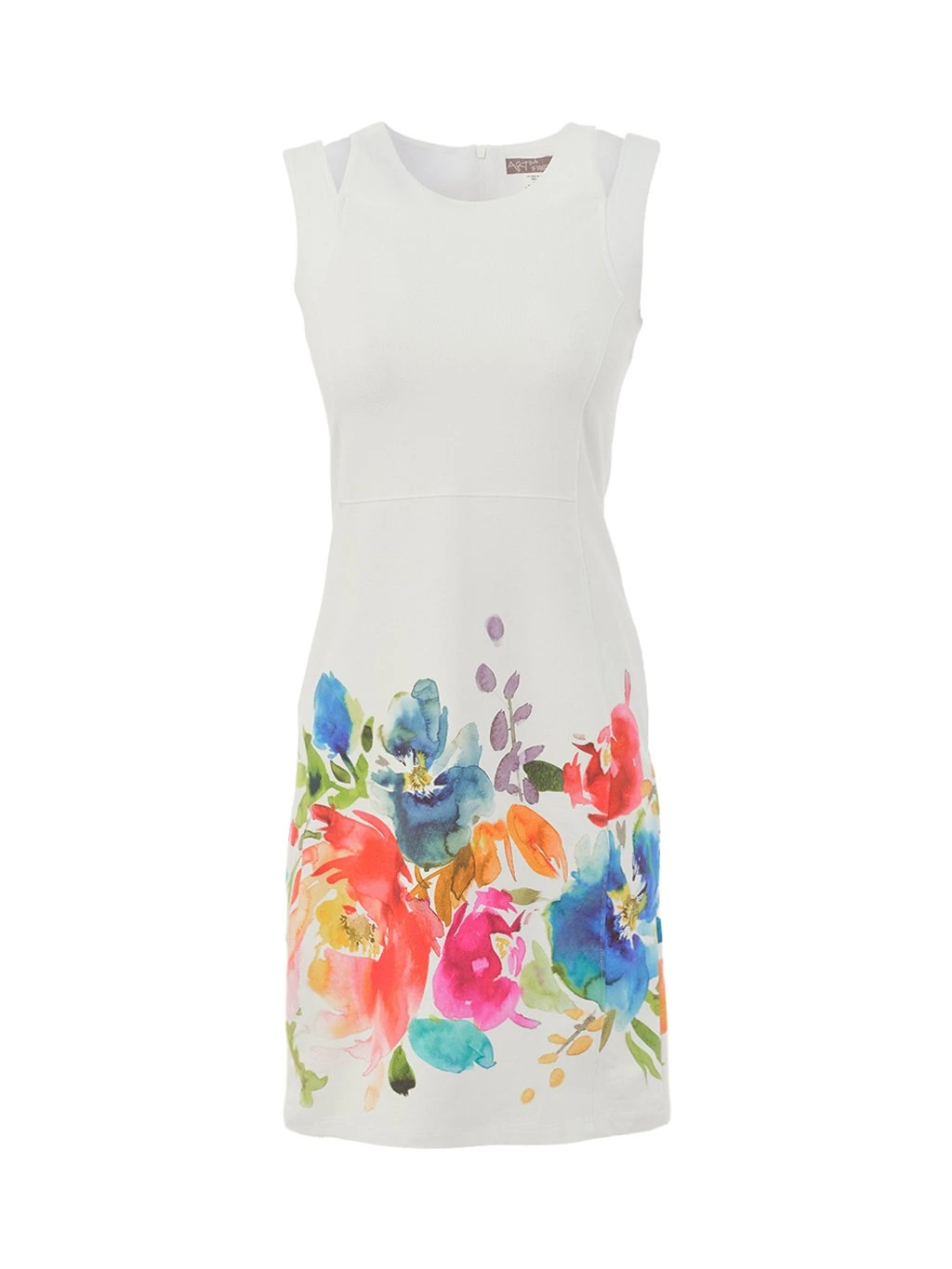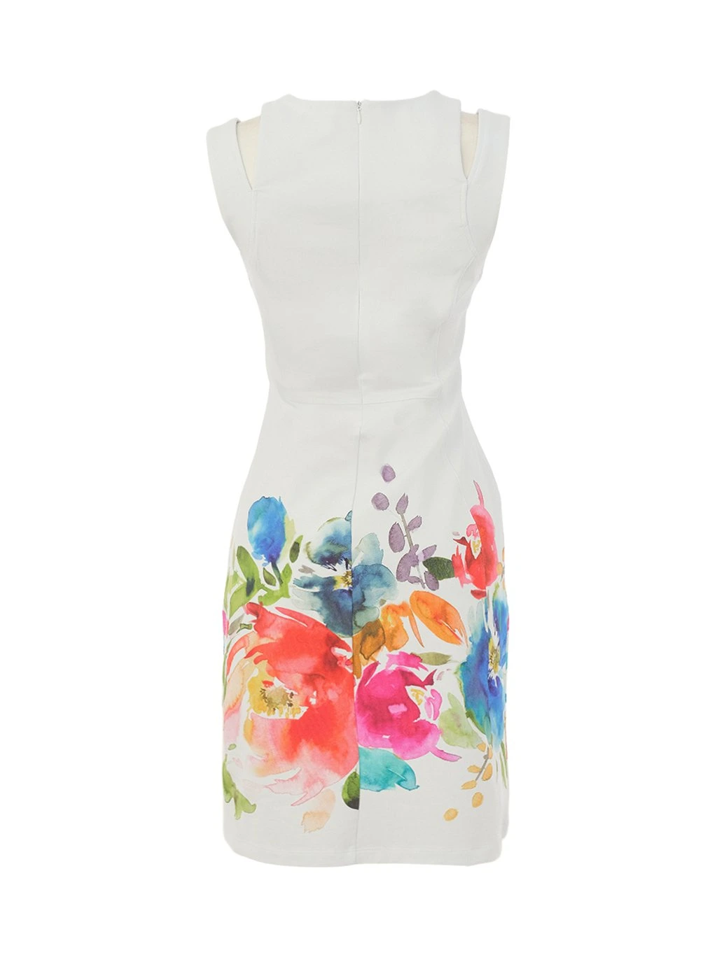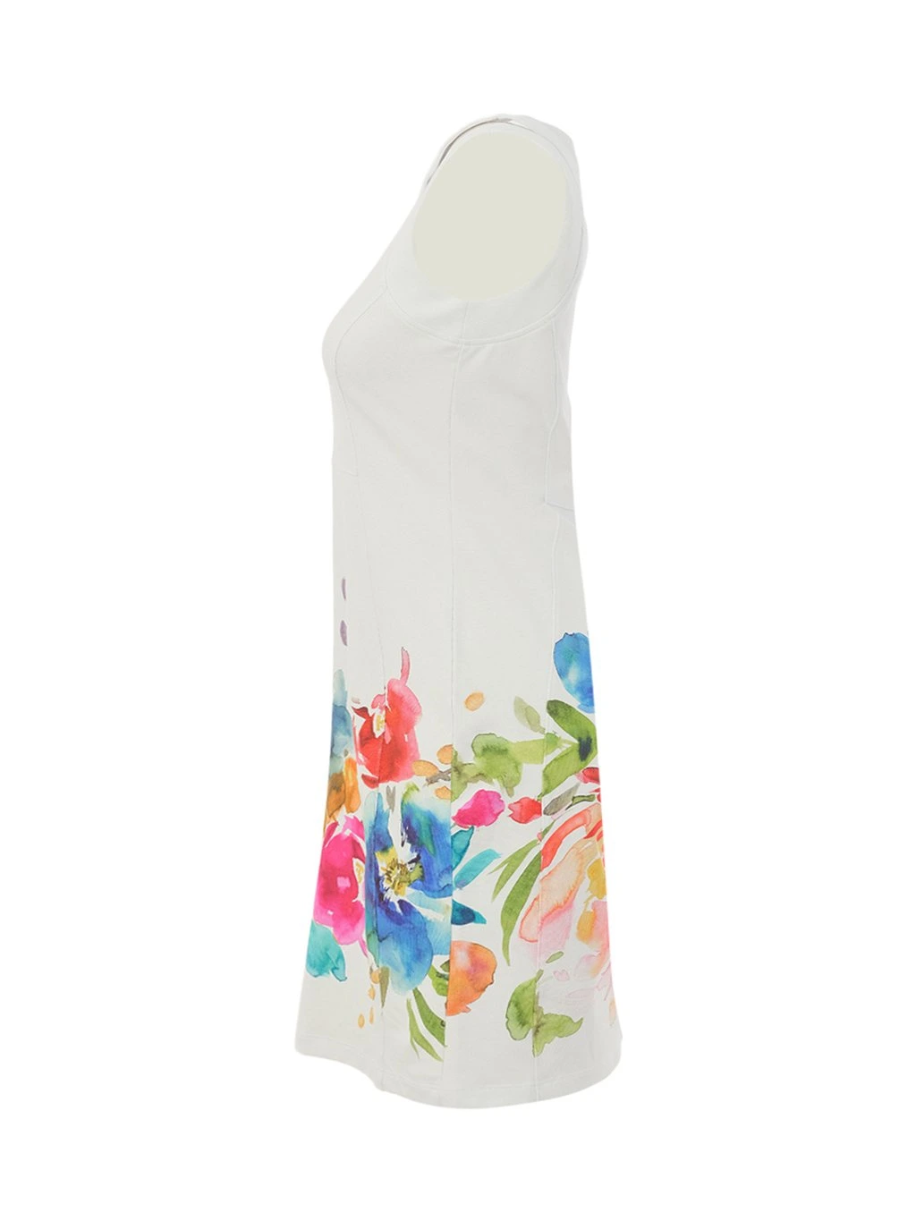 Elegantní dámské šaty Dolcezza zaujmou jemným, uměleckým květinovým potiskem v zářivých odstínech modré, červené, růžové a oranžové. Barevný motiv vytváří krásný kontrast s čistým bílým základem a dodává modelu svěží, letní charakter.