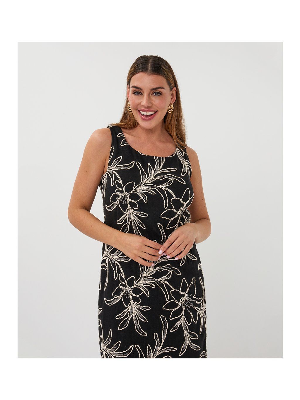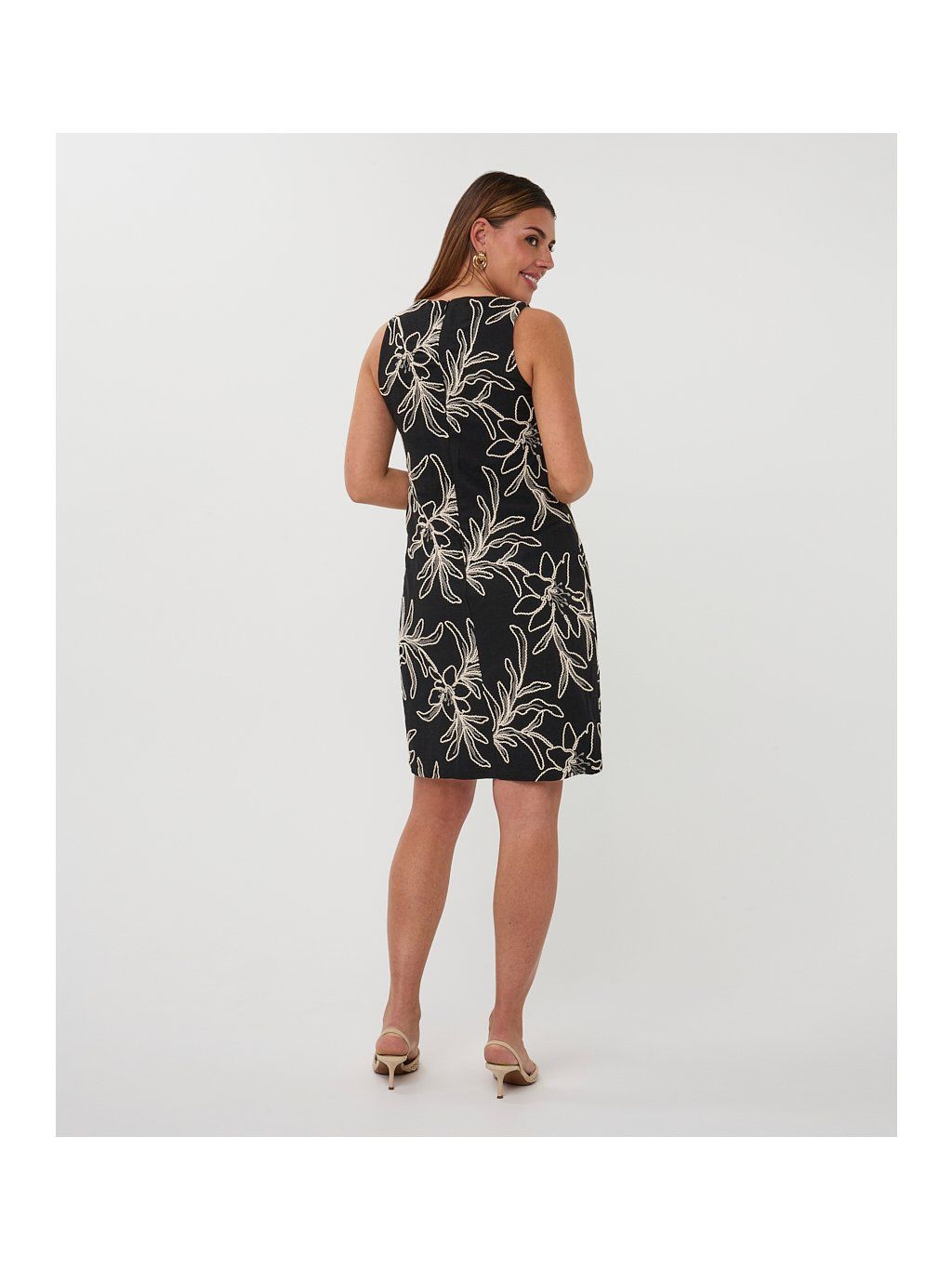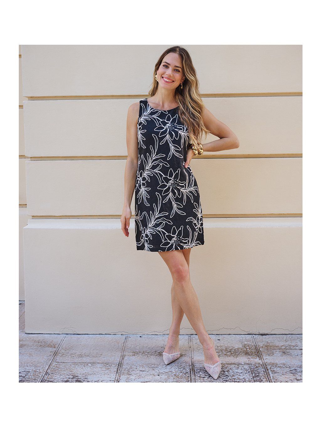 Kontrastní výšivka působí velmi sofistikovaně a dodává šatům luxusní charakter. Rovnější střih krásně sedí na postavě a zajišťuje pohodlí během celého dne.