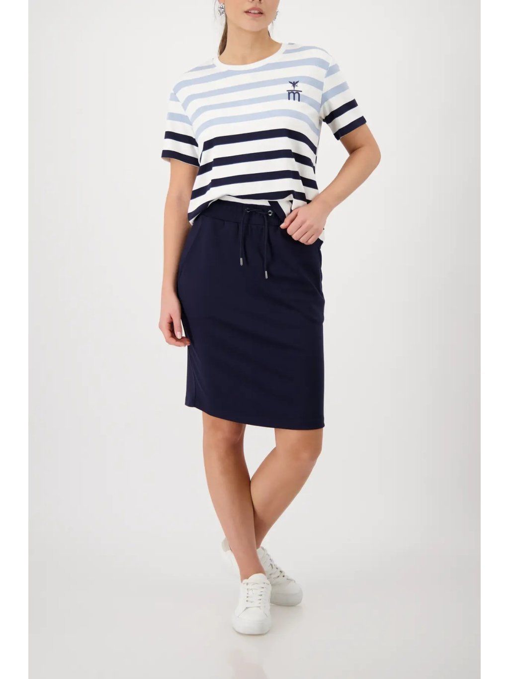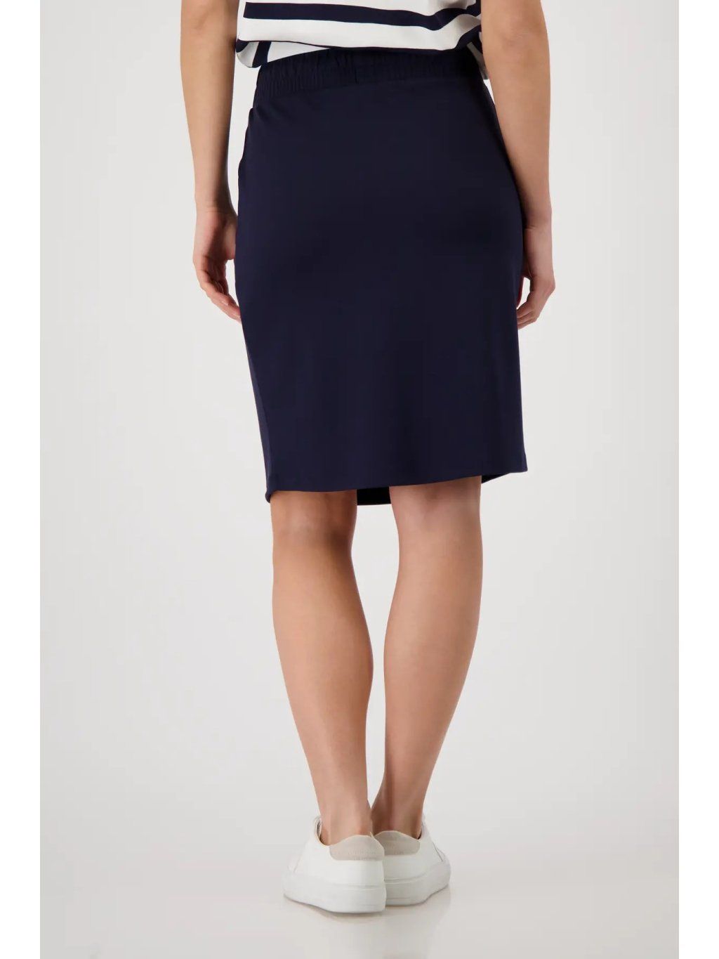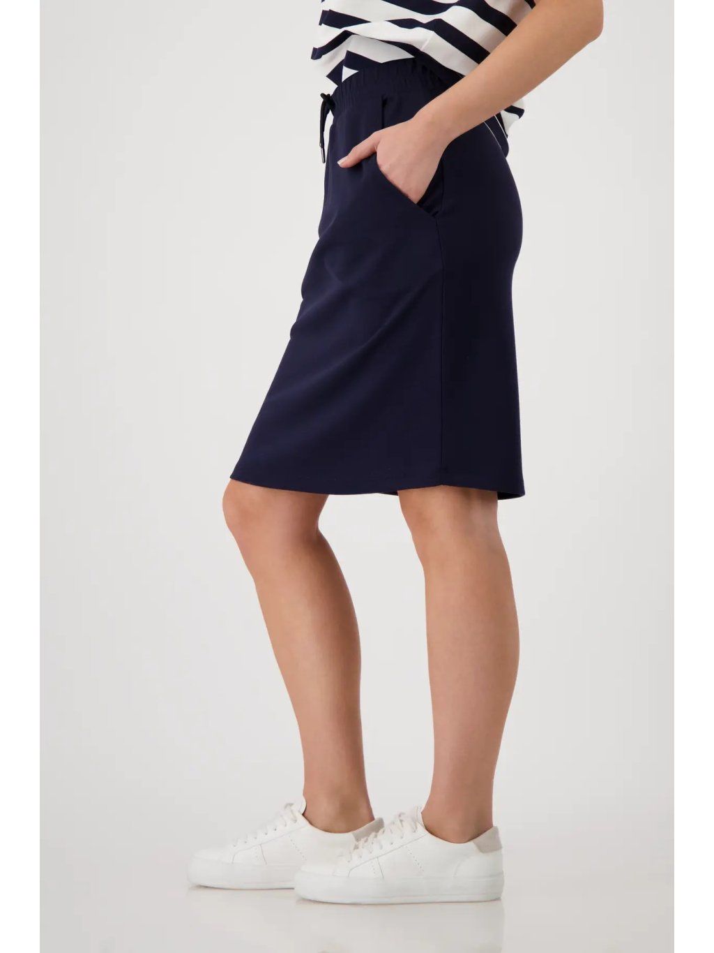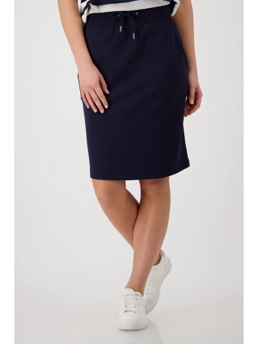 Sportovní dámská sukně MONARI v nadčasové tmavě modré barvě (marine) je dokonalým základem šatníku. Minimalistický design v kombinaci s čistými liniemi působí velmi sofistikovaně a snadno se kombinuje pro různé příležitosti.