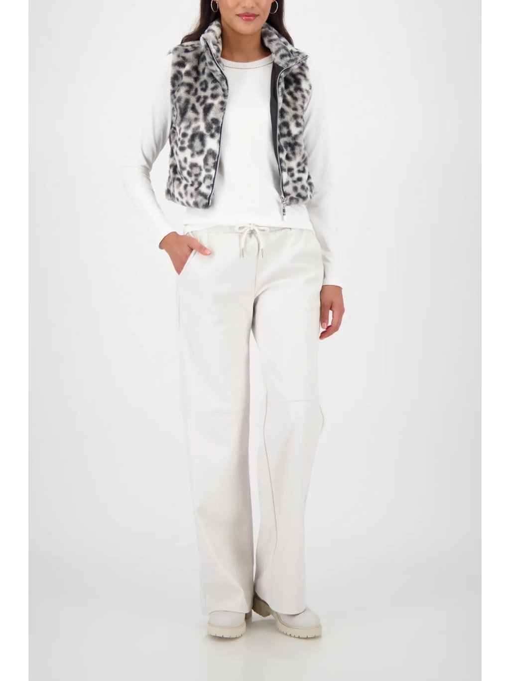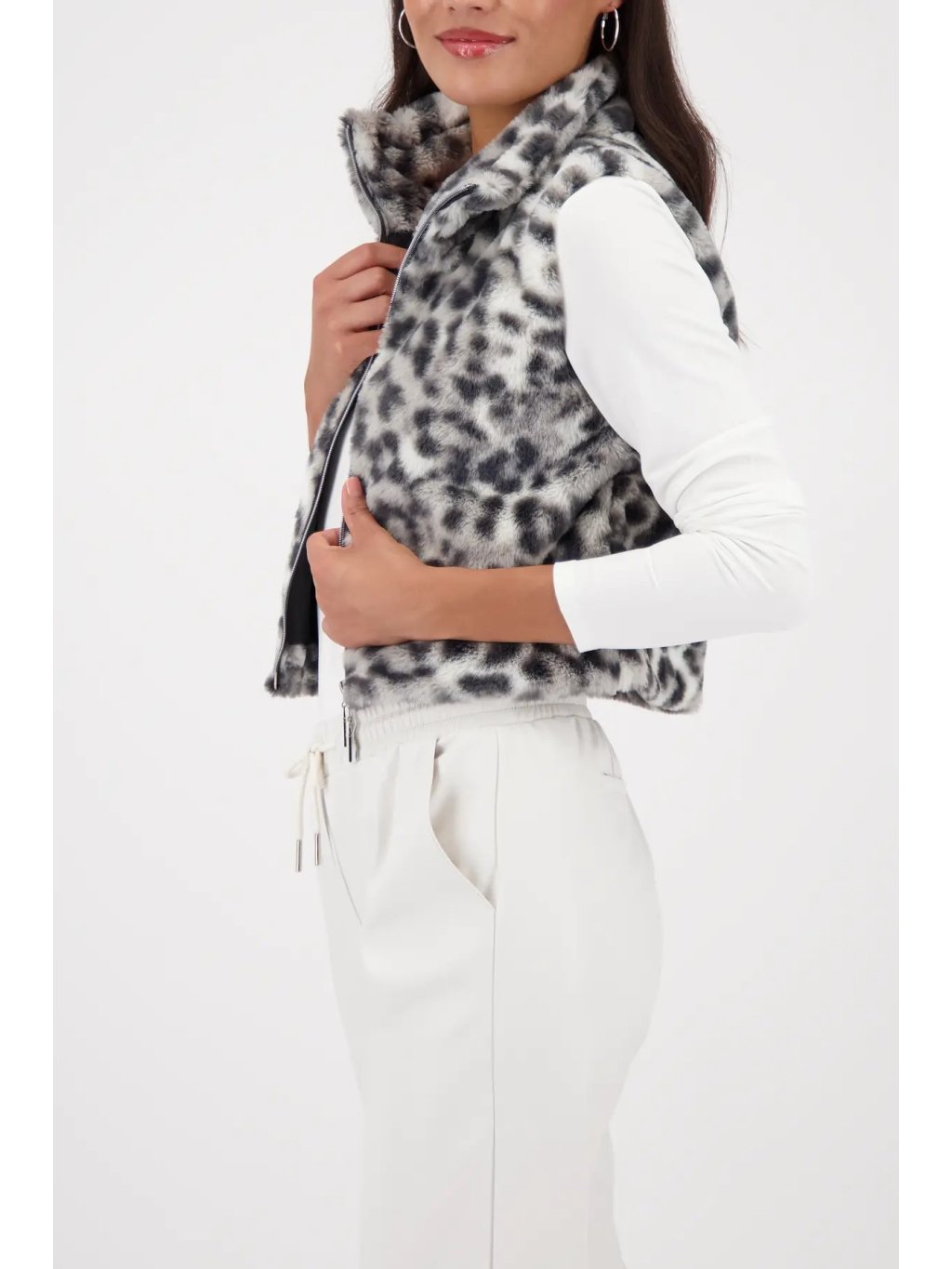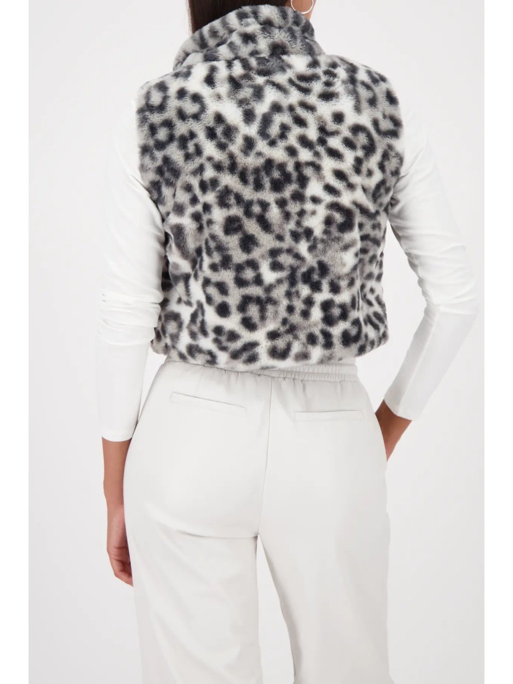 Stylová kožíšková vesta s moderním leopardím vzorem v odstínu šalvěj je dokonalý kousek pro zimní i přechodné období. Luxusní měkký a nadýchaný umělý kožíšek působí velmi příjemné na dotek a dodává outfitu elegantní, módní a přitom hravý vzhled.