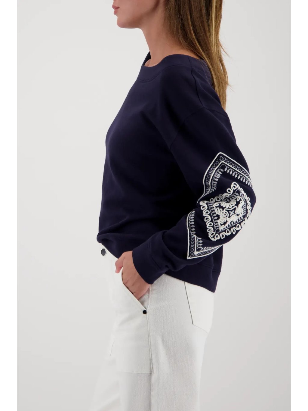 Tmavě modrý dámský svetr s jemným vzorem působí elegantně a kultivovaně, s důrazem na čisté linie a decentní rafinovaností. Decentní vzor dodává modelu hloubku a osobitý charakter, aniž by působil výrazně nebo rušitě.