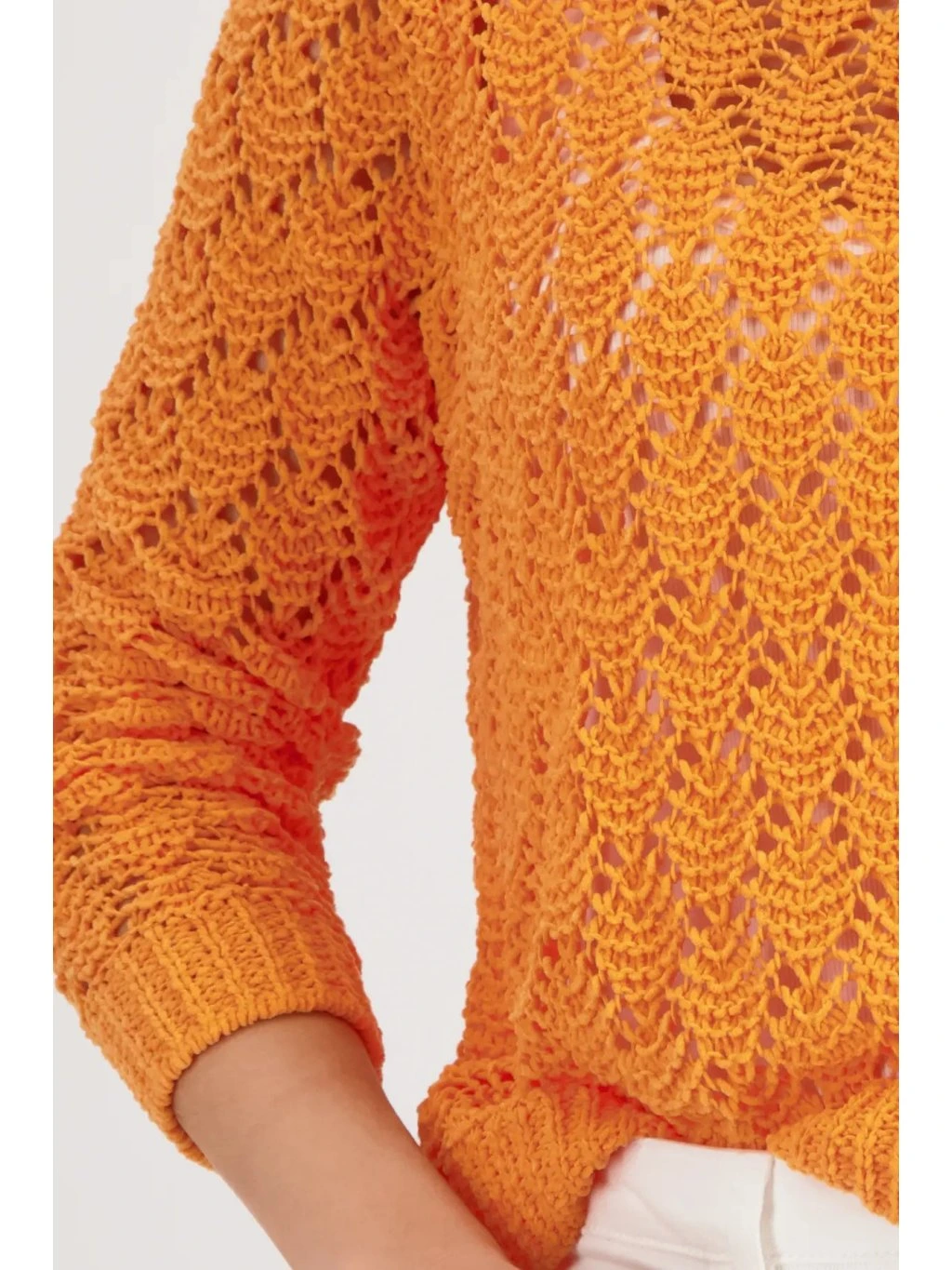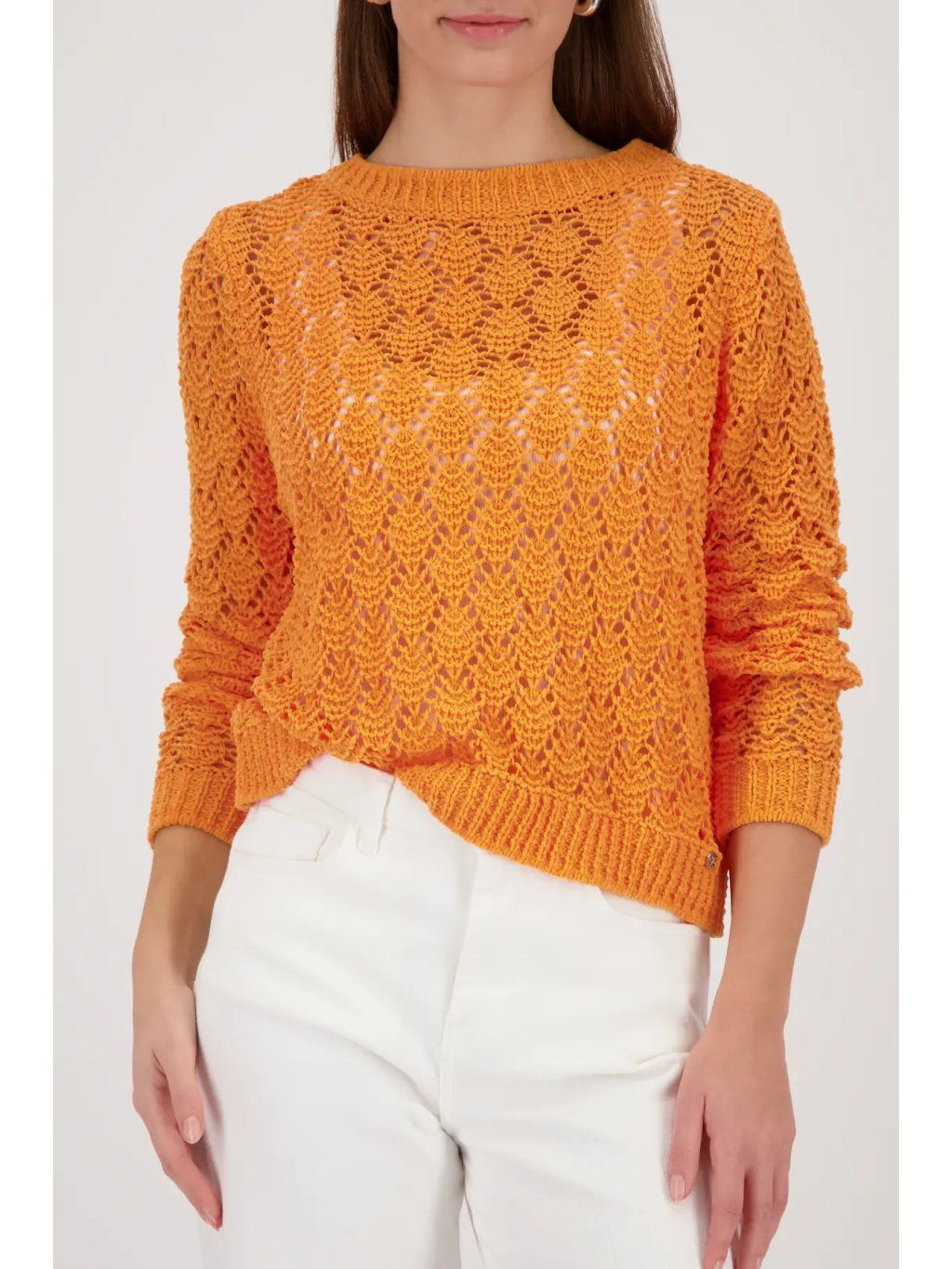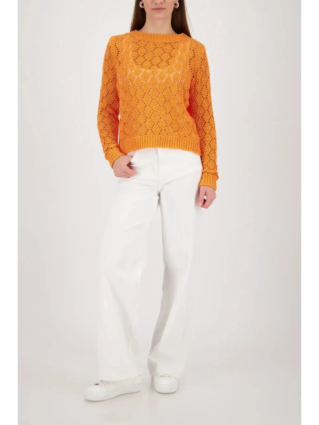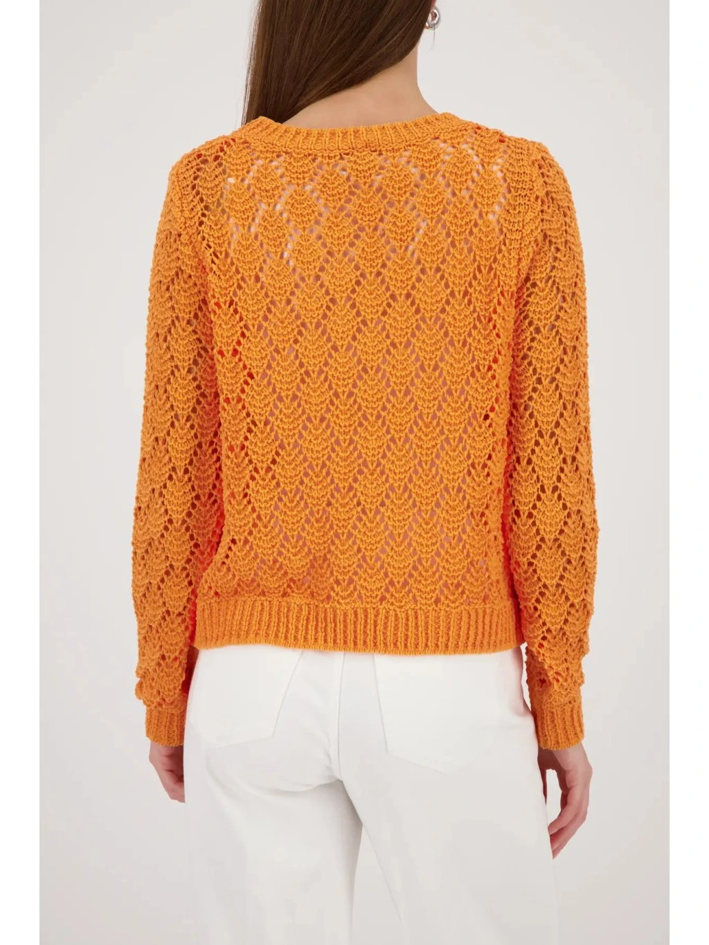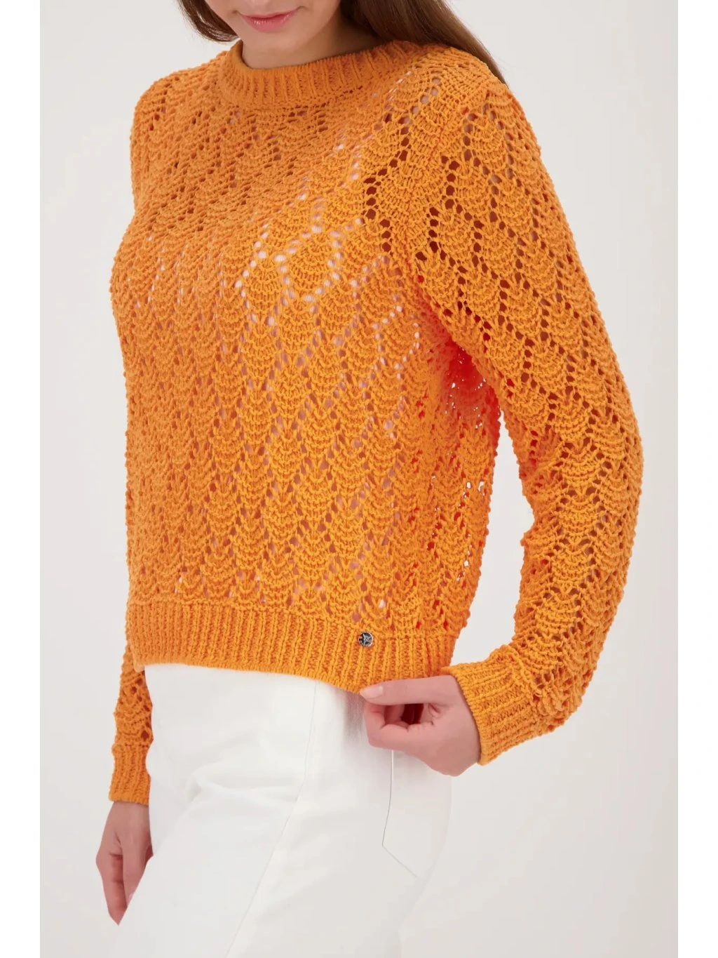 Stylový dámský svetr MONARI v výrazném odstínu aperitiv zaujme moderním ažurovým úpletem, který dodává modelu lehkost a velmi zajímavou strukturu.
