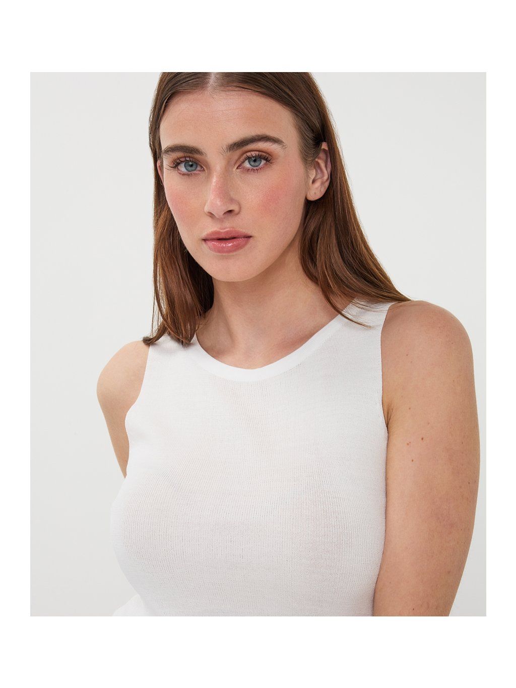 Top má jednoduchý střih bez rukávů, který krásně sedí na postavě a skvěle se kombinuje – ať už pod sako, ke kalhotám nebo sukni. Perfektní kousek pro vrstvení i samostatné nošení.
